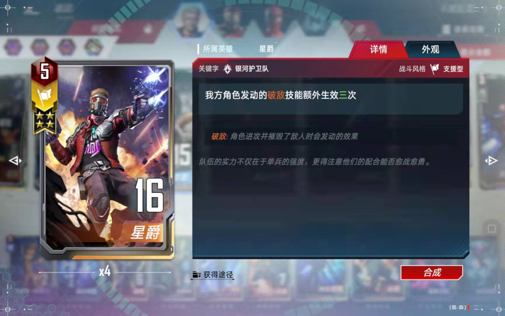 星爵可以触发伊戈的多次破敌效果,买了星爵以后,尽可能给星爵带个支援装备,比如鸭子送的任意支援武器就可以留给星爵。