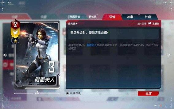 这张援军卡和初代钢铁侠基本上是钢铁侠卡组的2费的唯一选择,一般第一回合拿到的时候,并不会买,都会留给第二、第三回合使用。这张卡给队伍带来的整体收益实际上堪比3费卡牌。