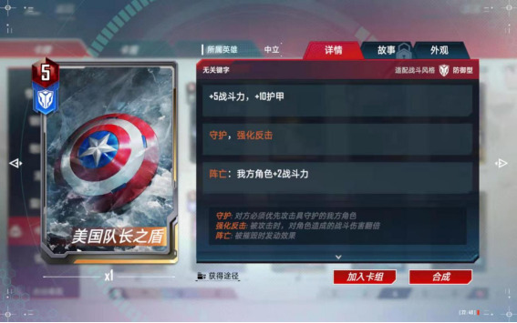 这张卡非常强,可以用在【复仇者】卡组里,美国队长配上美盾以后,具有强化反击效果,非常强大。