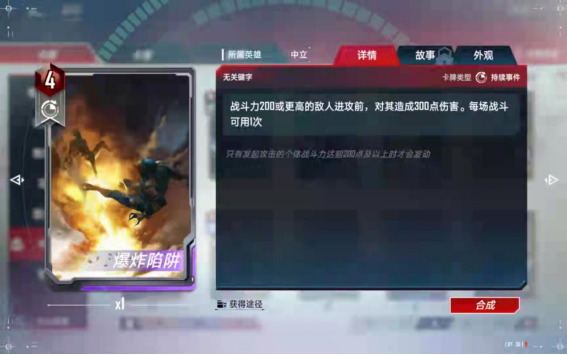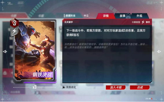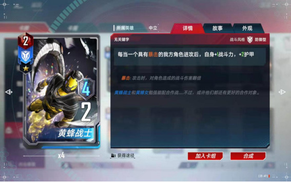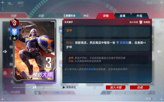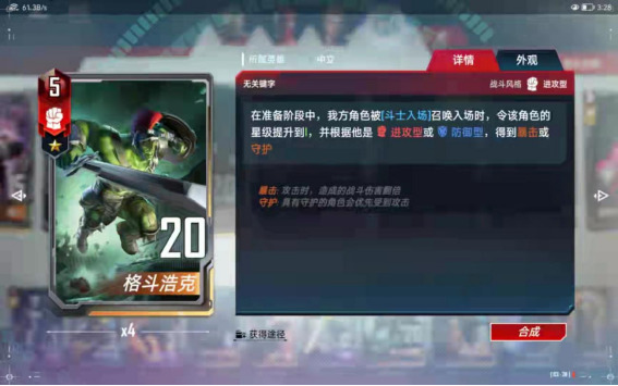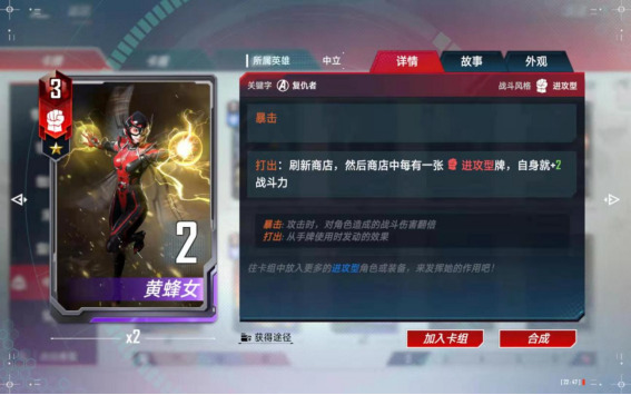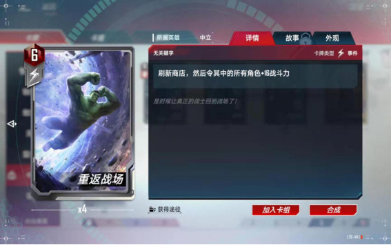 (7)、合成备注:中立的尘建议按需分配,如果想玩复仇者了,尘就留给美队,如果想玩【零氪五本红】的话,尘建议留给黄蜂女,如果想玩【格斗浩克】了,尘就留给浩克和斗士入场,只可按照一个方向合成,不能各个卡组都合一点,那样每个卡组都玩不了。