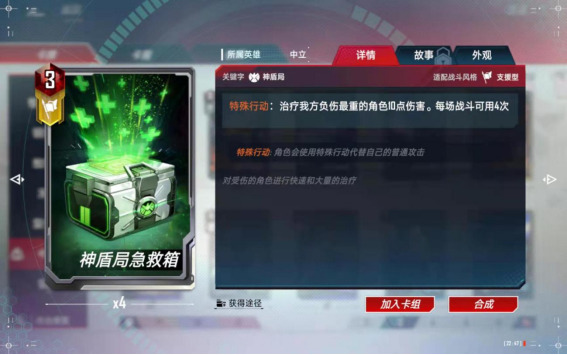 特殊行动:治疗我方负伤最终的角色10点伤害。每场战斗可使用4次。