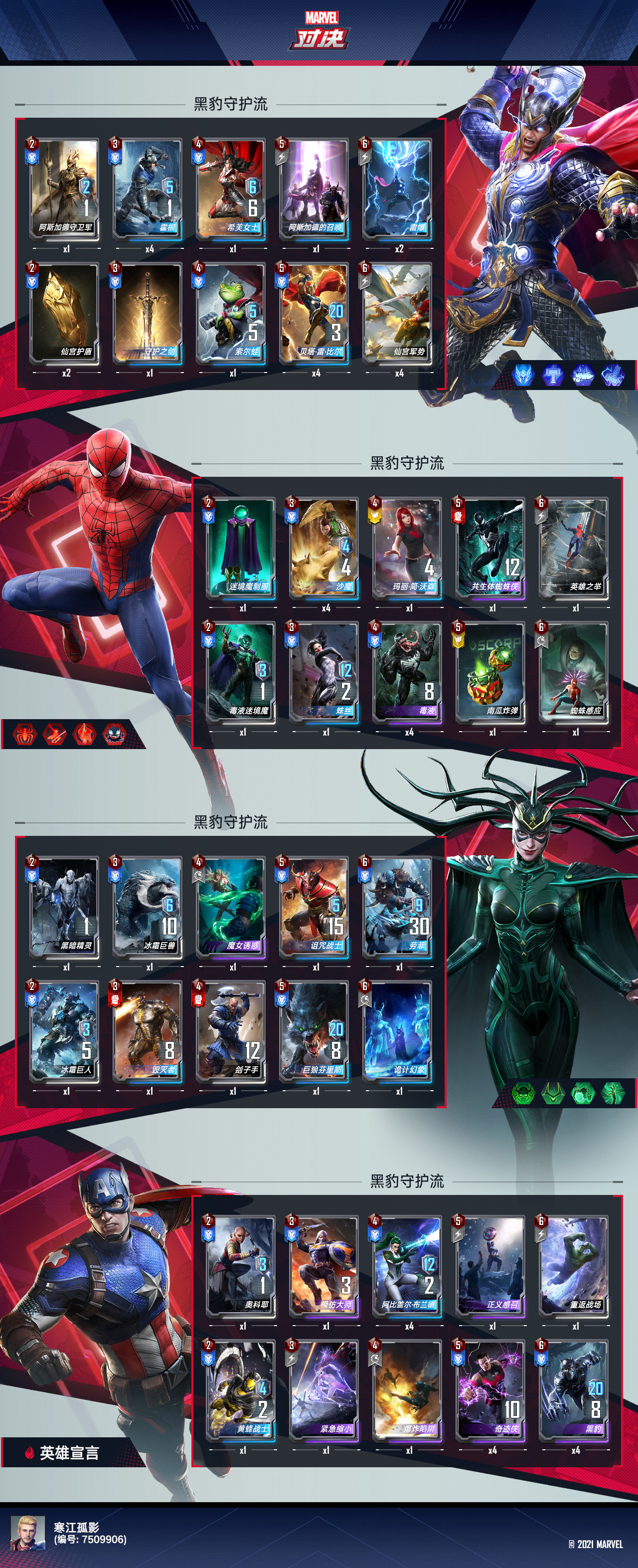 大家好,我是你们的老朋友寒江孤影,来自神盾局攻略组!本期给各位萌新玩家带来一套0橙卡组:黑豹守护流,这套卡组核心卡基本都是紫卡和蓝卡,黑豹可以通过英雄试炼获得,其他紫卡如果没有可以用蓝卡替代,只要思路正确就没啥问题。这套卡组可以帮助萌新开荒过渡,卡牌游戏就是个长期收集的过程,没有卡牌时不要焦虑,慢慢玩总会有的^_^ 下面直接开始吧!