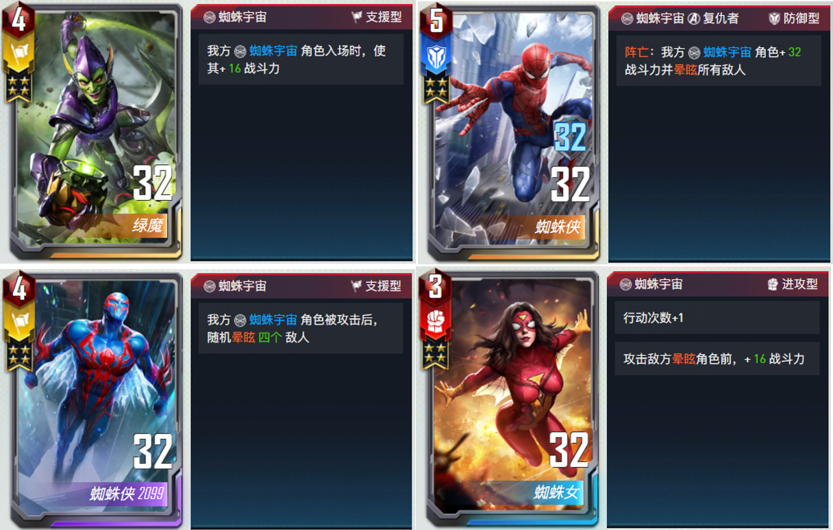 核心卡:绿魔、蜘蛛侠、蜘蛛侠2099、迈尔斯、蜘蛛女等