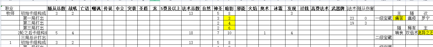 之前看过我攻略的都知道,我有一个表格专门记录我自己在玩对决的的时候出宝藏的数据,这里贴一下牧师正常出火焰的概率为百分之30左右,如果达成法伤要求,火焰会提高到百分之40左右,如果没达到要求则会降低到百分之20左右。