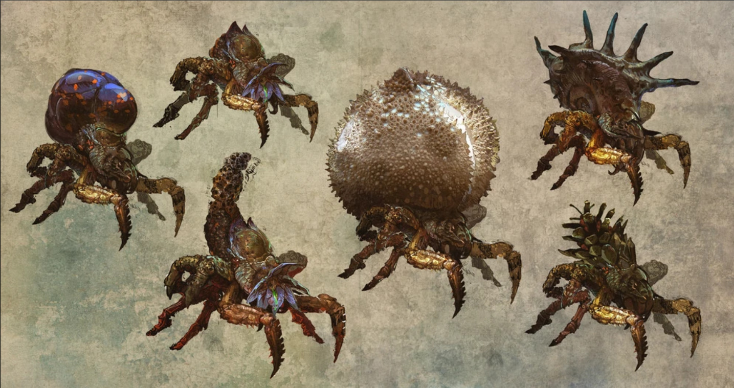 在猎魔人的世界中科斯切伊(Koshchey)这个名字代表着死亡,它既不是螃蟹也不是蜘蛛,双十字召唤术赋予了科斯切伊庞大的身形,它的躯干至少有六米宽,而躯体综合了蜘蛛和甲壳动物的特征,有五对细长却十分坚硬的腿,以及危险的前螯。科斯切伊拥有与体形一点也不相称的敏捷,它的甲壳则提供了几乎无敌的防御力,让它极其难以被杀死。