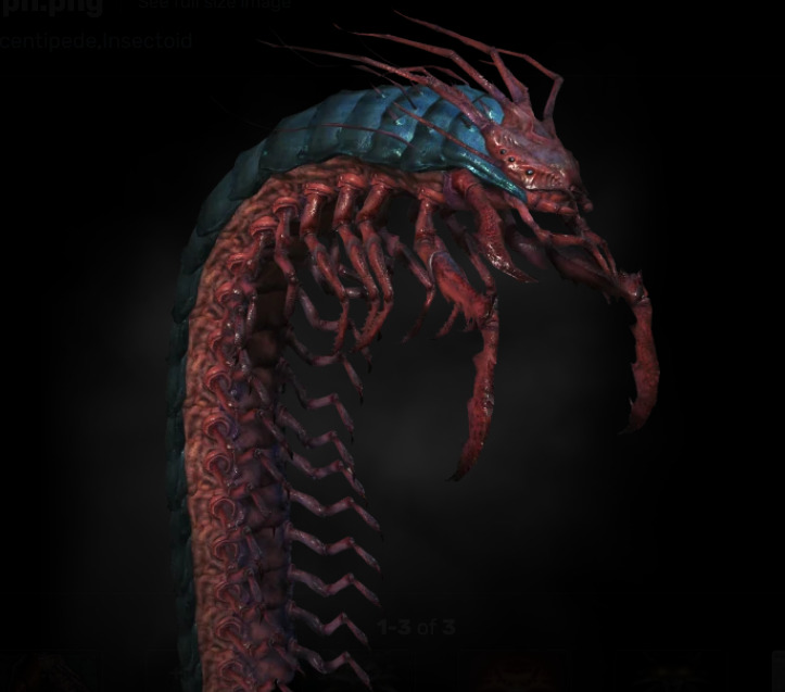 在陶森特我最烦遇见的怪兽除了喷毒的巨棘魔树外就是神出鬼莫的巨型蜈蚣了,巨型蜈蚣(Giant centipede)是体型庞大、长得像蜈蚣的怪兽,在世界上的许多地方都可以看到它们的踪迹,不过在陶森特特别常见,陶森特的巨型蜈蚣经常与沙尔玛居住在一起,因为这两种怪物之间有着奇特的共生系统:巨型蜈蚣会捕食吃沙尔玛粪便的小型生物。坚硬的甲壳质盔甲几乎覆盖了巨型蜈蚣的全身,从甲壳下面伸出的是一排排钩状的四肢。巨型蜈蚣能够以惊人的速度钻进地面,然后又出现在另一个地方。一旦他们选择了一个目标,他们就会果断地绕着他转一圈,试图靠近他。巨型蜈蚣主要通过强有力的下颚进行攻击,但它们也拥有腺体,可以分泌酸液。