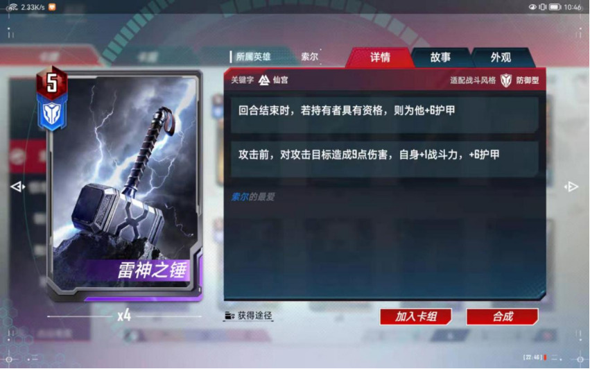 5、正常情况下,本卡组停留在五级商店三四回合找关键牌佩戴雷神之锤。