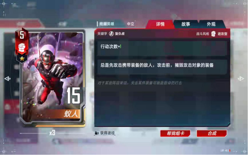 蚁人可以完全克制惊队,打麻辣鸡丝也有优势,可以作为核心随从之一。