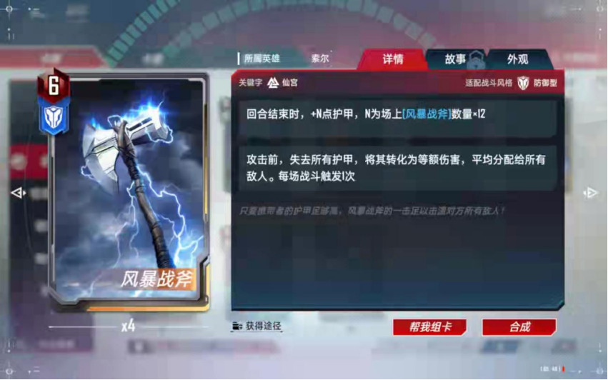 2、后期给我方所有随从佩戴“风暴战斧”,如果我方随从佩戴了四个风暴战斧,那么每个佩戴风暴战斧的随从每回合都增加48的护甲。
