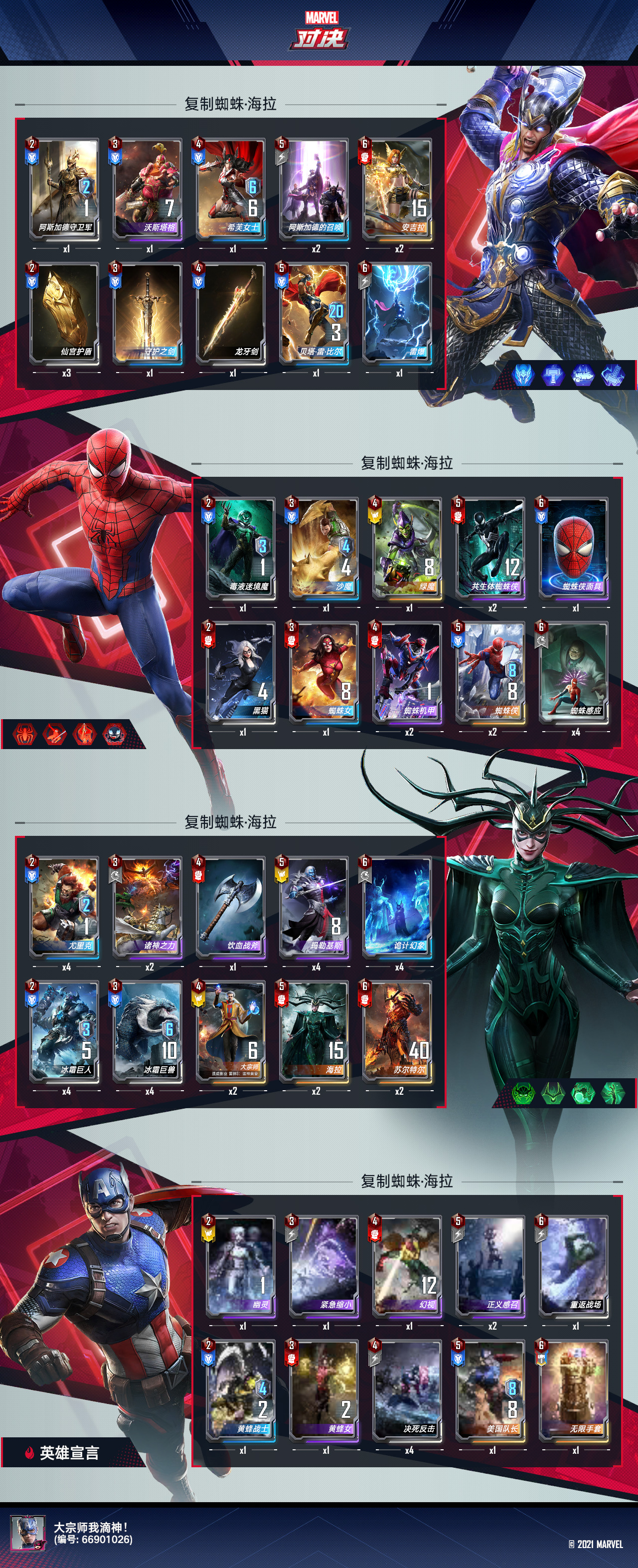 顶配:蜘蛛侠4、共生体蜘蛛侠4、诸神黄昏4、正义感召4、麻辣鸡丝+海拉