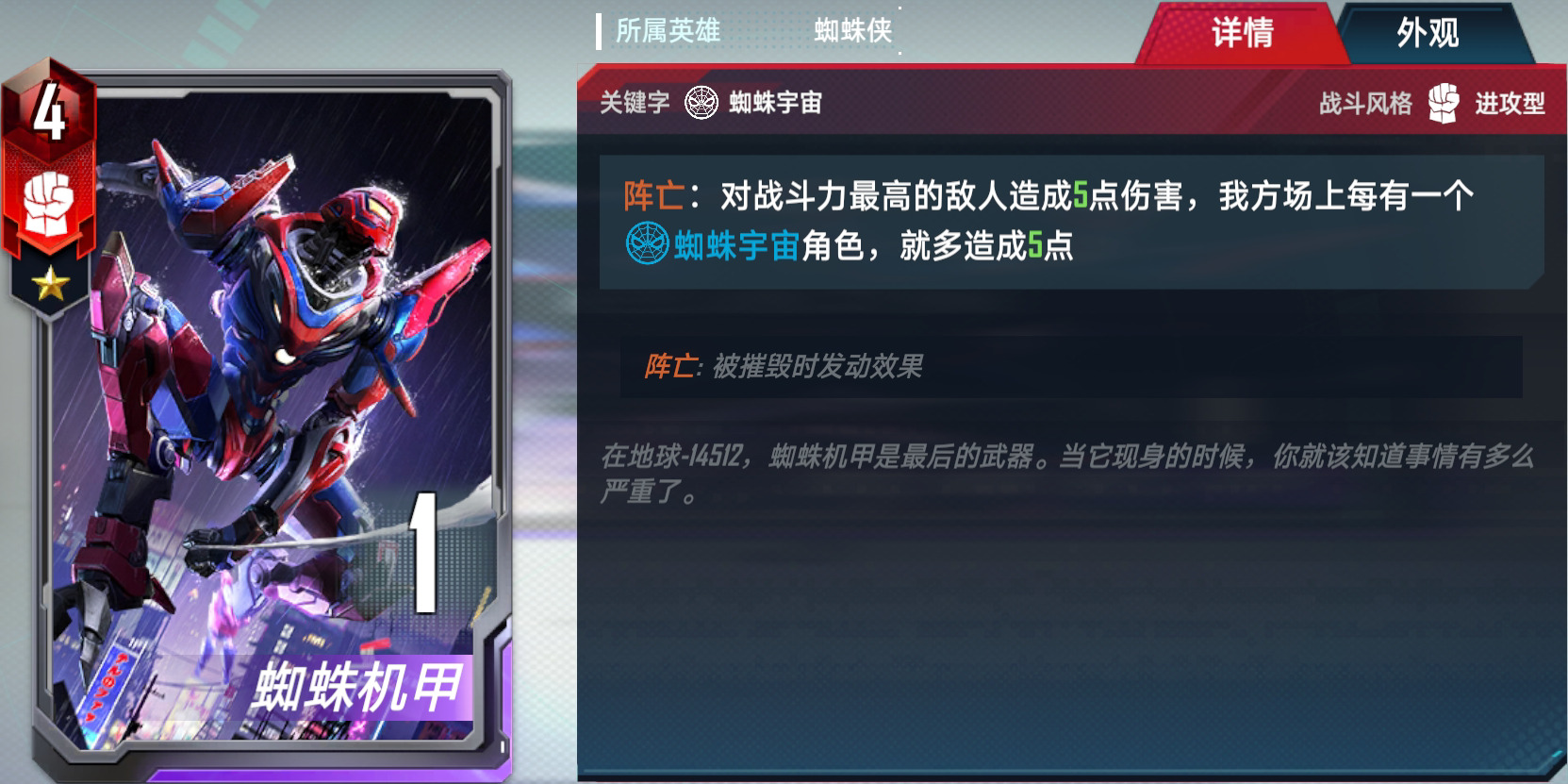 蜘蛛侠虽然国服又削了一次效果,+12变成+8,但配上大宗师复制的层层亡语还是十分给力的,4星蜘蛛侠阵亡可以给所有友方蜘蛛角色+32点身材。