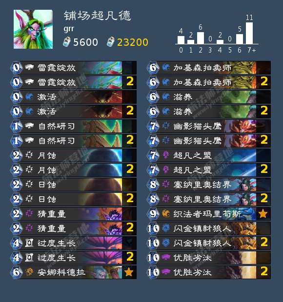 grr除了标志性的法师外,还有一套在我看来相当聪明的选项,铺场超凡德,不同于AP流派的担心夹断和安娜德波数少,这套德鲁伊上限达成的门槛确实低了不少,只要有超凡就能有强力的表现,相反的是没有超凡就。。。但这套确实说得上是应对贼瞎下最出色的一个版本了。