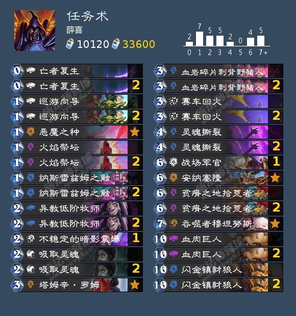 同样有些怪异的还有薛喜的阵容,他带起了奥秘骑,吸血瞎还带上了玛瑟里顿,但是他的目标相对明确一些,他是冲着抓吸血瞎去的,他的术士不仅和日本众一样带了两张火焰祭坛,还有一张吃手手,奥秘骑和内战用的难以处理的玛瑟里顿都有充分的解释了,同时留足对其他卡组的容错和强度。