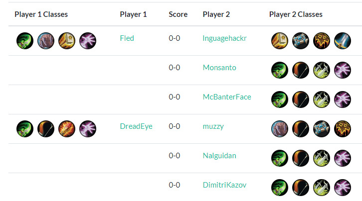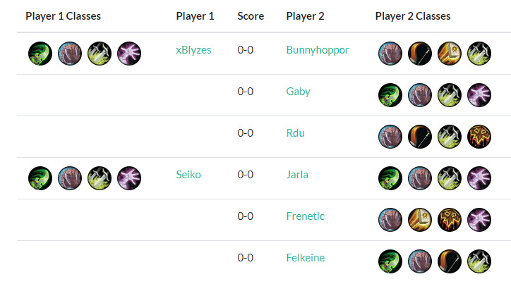 本期由于依旧是征服赛制,和上周环境相似,再外加季后赛求稳的心态+选手减少,创新并不多,我想就选手少的特点发挥,分区来探讨阵容。本次是先出对阵才交牌表,对阵关系为:1-2名轮空首轮,3对6,4对5,7-8名败者组开打。