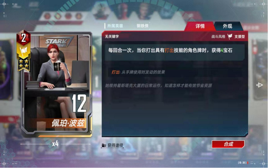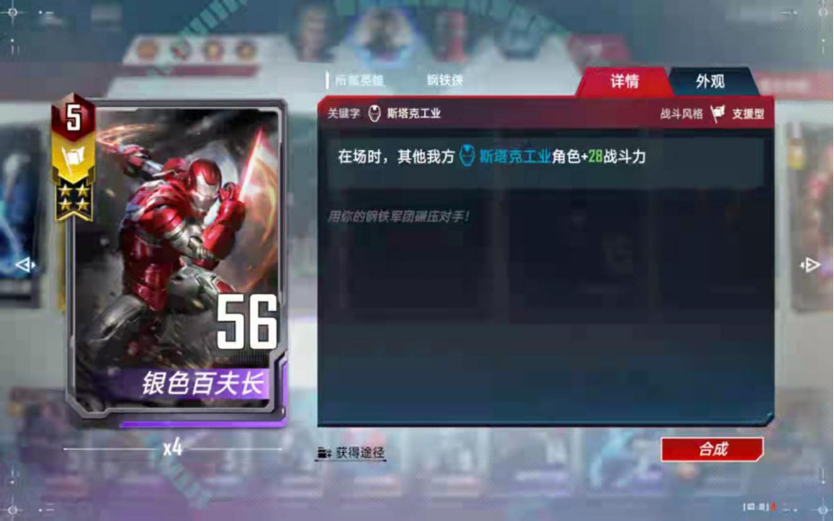 这张卡是本卡组的重要buff卡牌,和红浩克一起可以给本卡组的工具人钢铁侠单位增加大量的攻击。