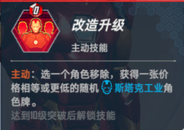 个人比较喜欢改造升级,一般专用于点2费牌,点完的牌是回手的,很容易出足球机器人,出钢铁侠Ⅰ型也不亏。