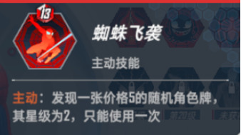 蜘蛛飞袭,殊为强大的苟分技能,第四回合拿到一张两星的五费牌,三中选一,即使其中没有特别适用的,拿到单卡强度不错的牌的概率还是很大的,娱乐性拉满的同时保证一定的强度,两回合内基本无忧,进可跳本一搏,退可补强入人;