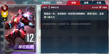 当然如果节奏不好或者血量告急,也可以选择点2星变4星4费怪,基本也够够的了。蜘蛛侠的技能只有这三个好用,英雄责任需要搭配迁越之躯,中立4费牌一共9张,两个卡牌位置赶一张想要的牌是需要一点运气的,关于“赶牌”在后文配牌板块中再详细说明。