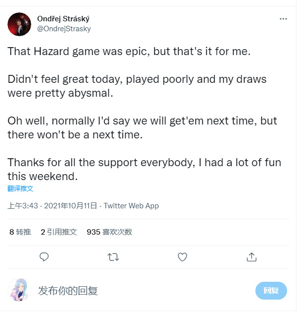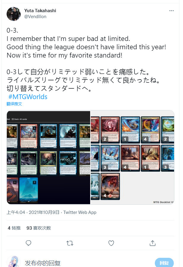 说来搞笑,高桥优太这次限制赛的开局居然是0-3,他当时都觉得自己完蛋了,“not my day”,没想到后来直接没输过,也是命运弄人。