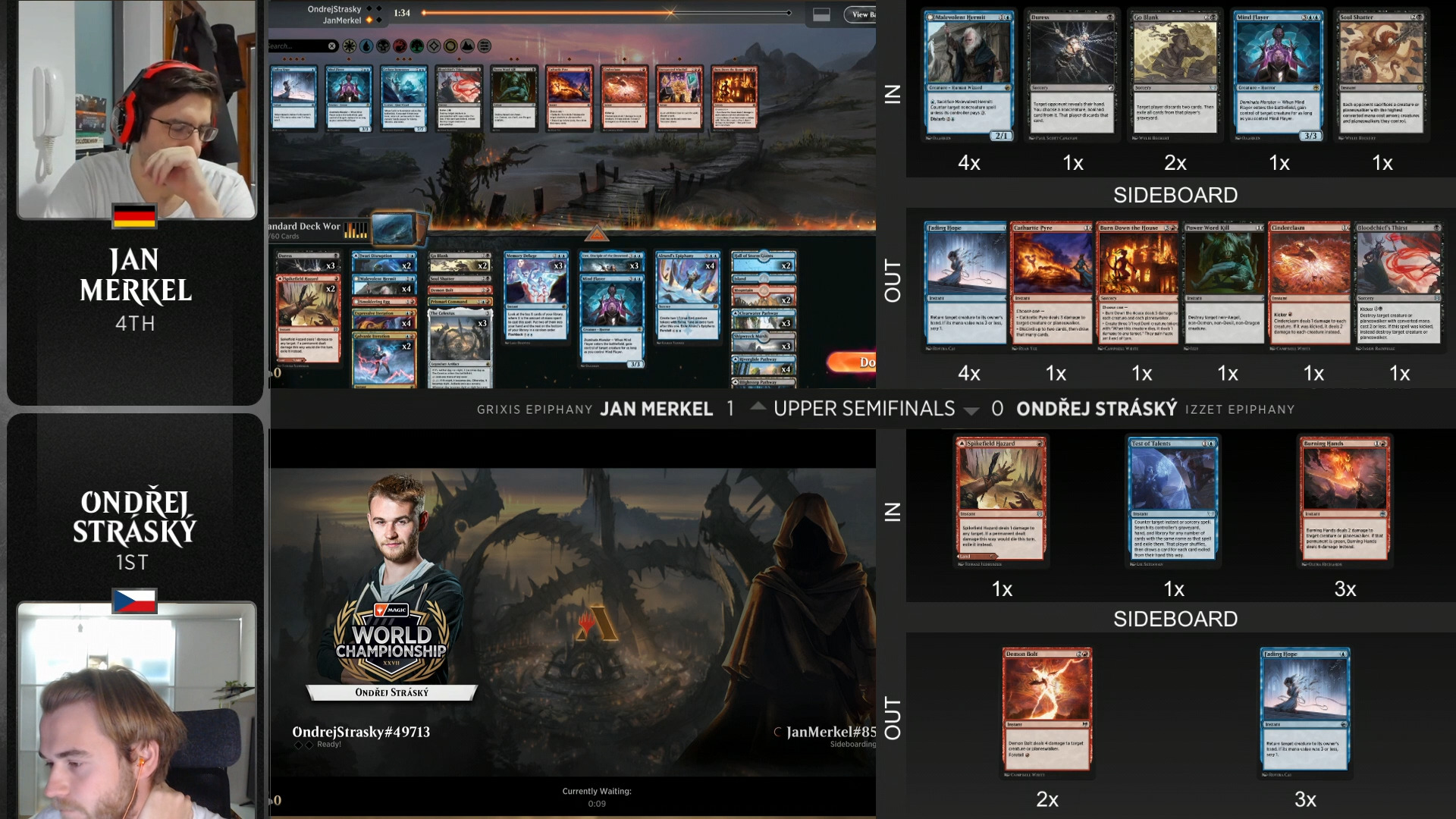 JMM战胜Strasky后和高桥对局,主牌局轻松取胜,但备牌局也面临了类似的问题:高桥可以放心大胆的下掉垃圾去除,毕竟你的致胜是艾朗德的顿悟,但JMM必须得留着硬去除杀跨金桥巨龙,而这些去除咒语在前期互相下地抓牌的时期约等于手牌-1,非常影响展开,最终输给了活性更高的红蓝龙。