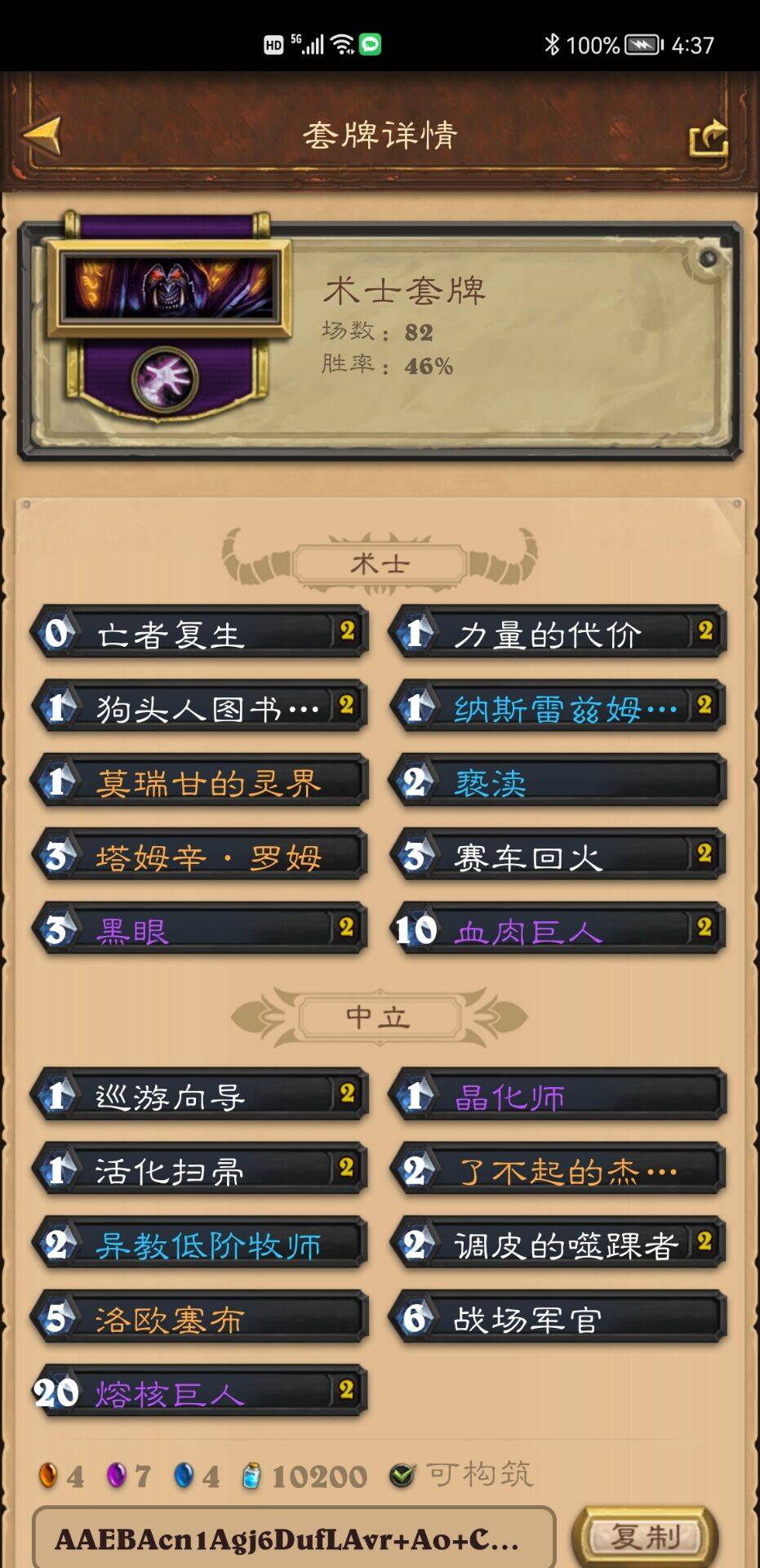 2.手牌体系:月初我看有营地老哥发的黑眼术带豺狼人和安纳塞隆。不过鱼和熊掌不可兼得,所以我还是选择了正常的体系。