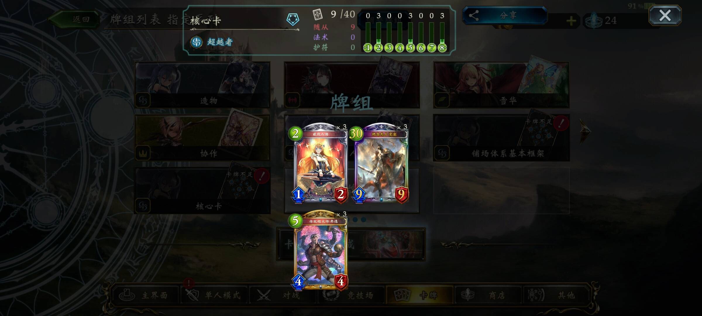 这套卡组是以铺场抢血为核心,为后续斩杀动作作铺垫的偏快节奏思路,在宽容上手2张以上的情况可以转为otk思路。