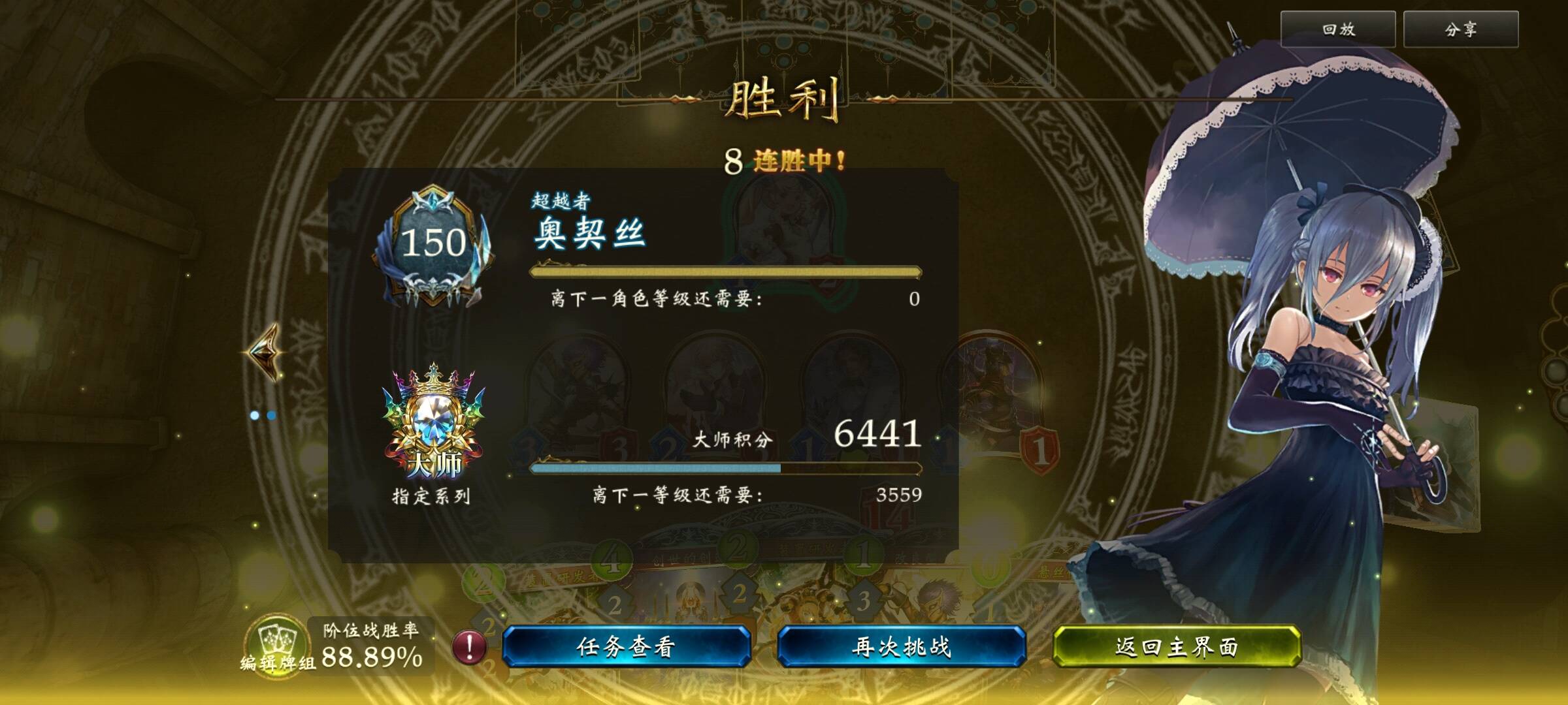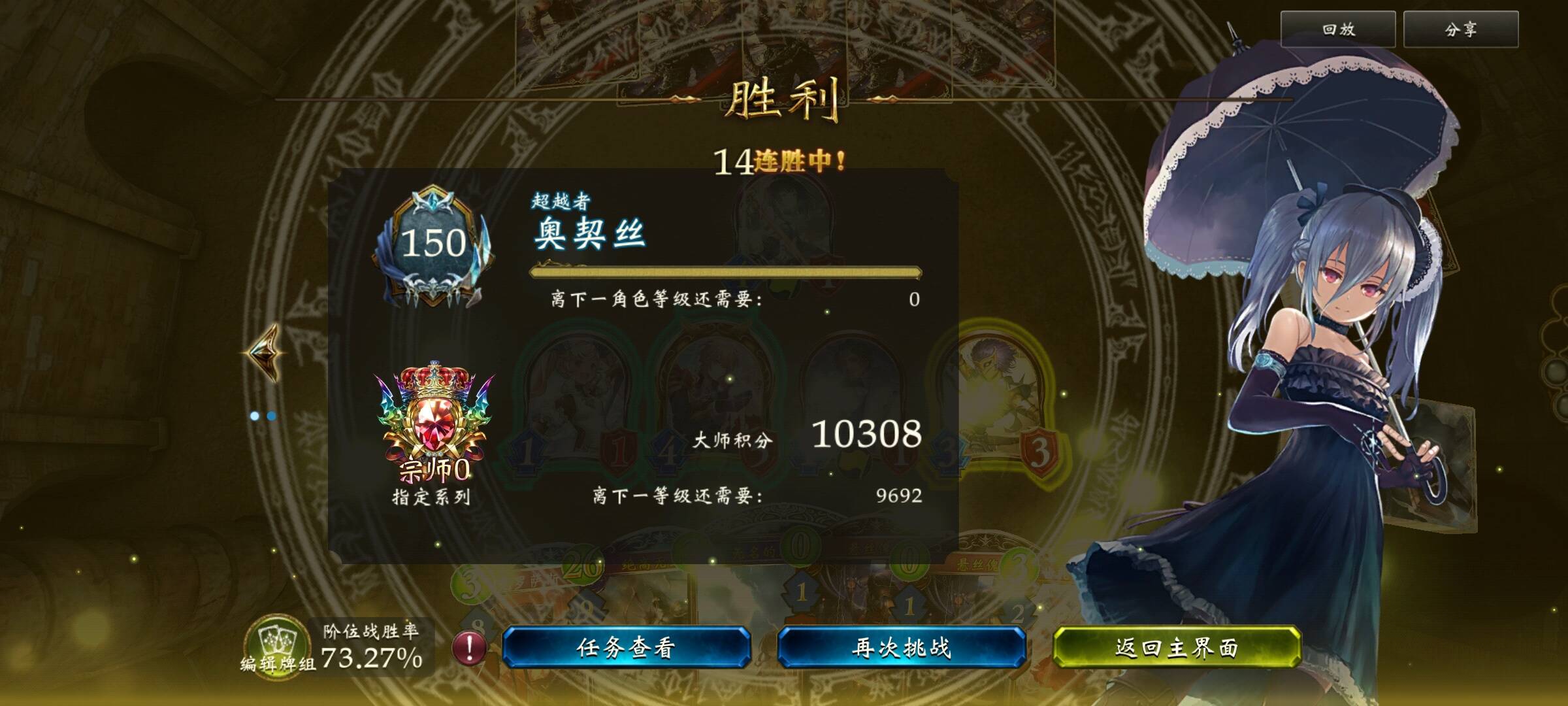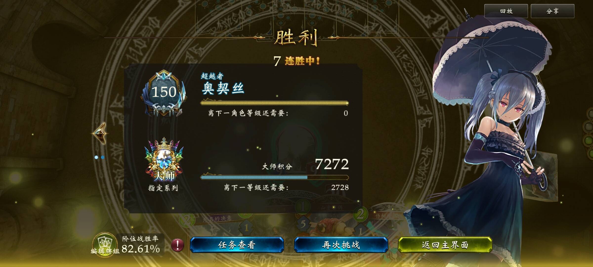 我使用这套牌从5k分直升GM0,多次取得较高连胜,最终胜率72%。