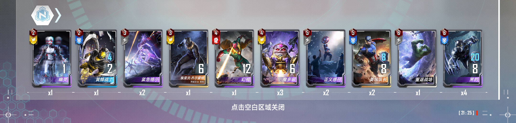 没有找到美队索尔前可以用霍根、青蛙加上守护之剑或雷锤来稳一下血量。前中期九头蛇的缺少爆发,对于这种“越打越强”的组合应对力有限;后期茫茫多的九头蛇士兵撞过来,造成的伤害还没有两星美队加的多。