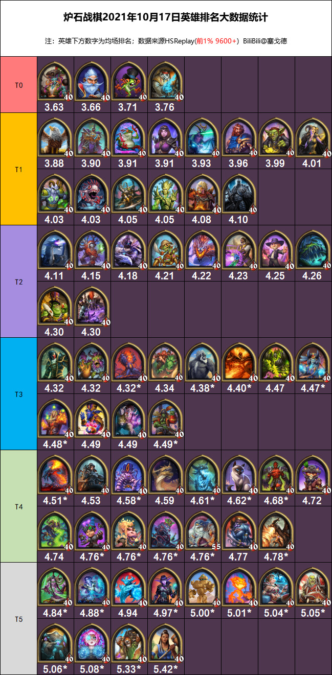 高位局采用前1%以上玩家,积分为9600+,英雄排名一图流,数字为均场排名(数据不足标※)