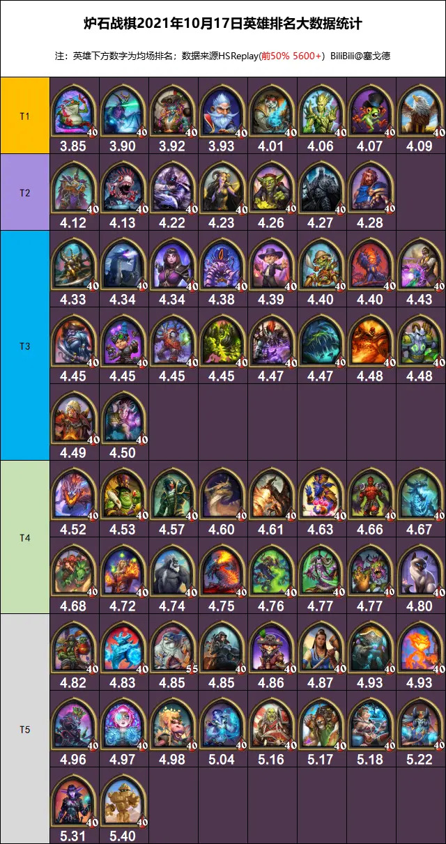 中位局采用前50%以上玩家,积分上升为5600+,英雄排名一图流,数字为均场排名
