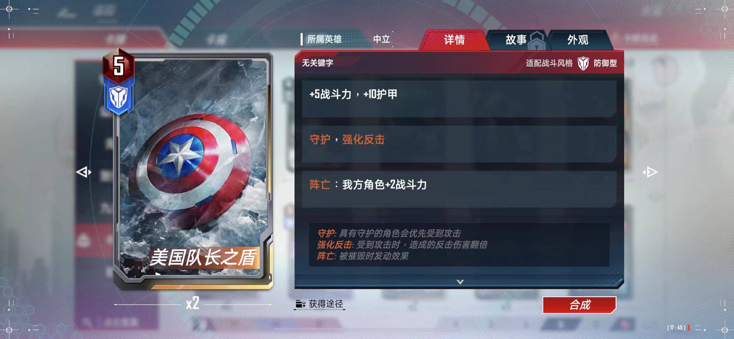 这套牌最核心的装备,为了配合埃里克·塞维格的技能并尽早并尽可能多地触发美国队长的能力。