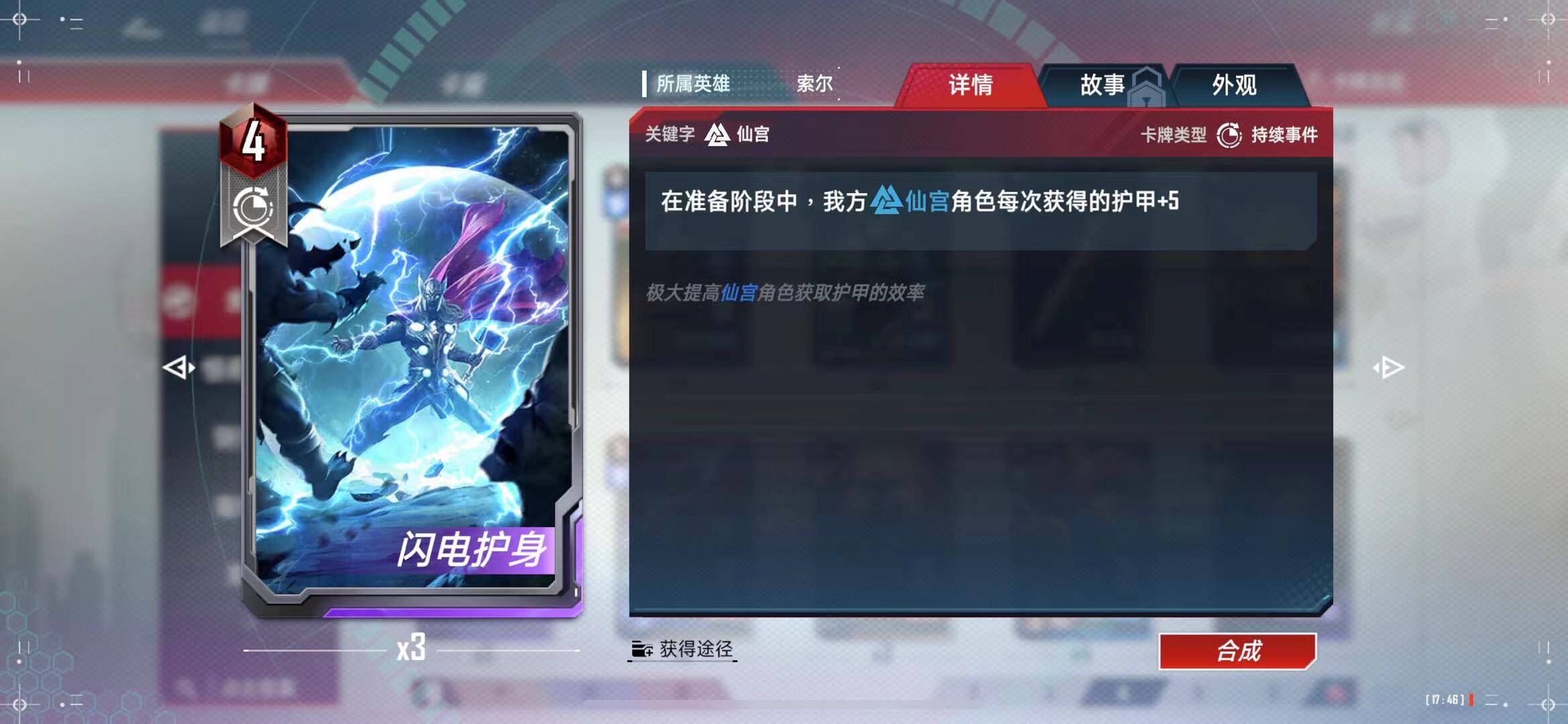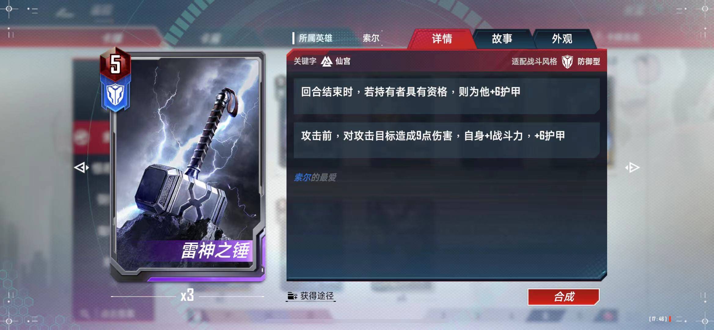 索尔是所有单卡中最能打的一张,由于其携带装备的高护甲,强化反击特性和护甲直接转换成战斗力的机制,让索尔成为了反击也痛进攻也痛的一位,是复仇者卡组中的中心C位。