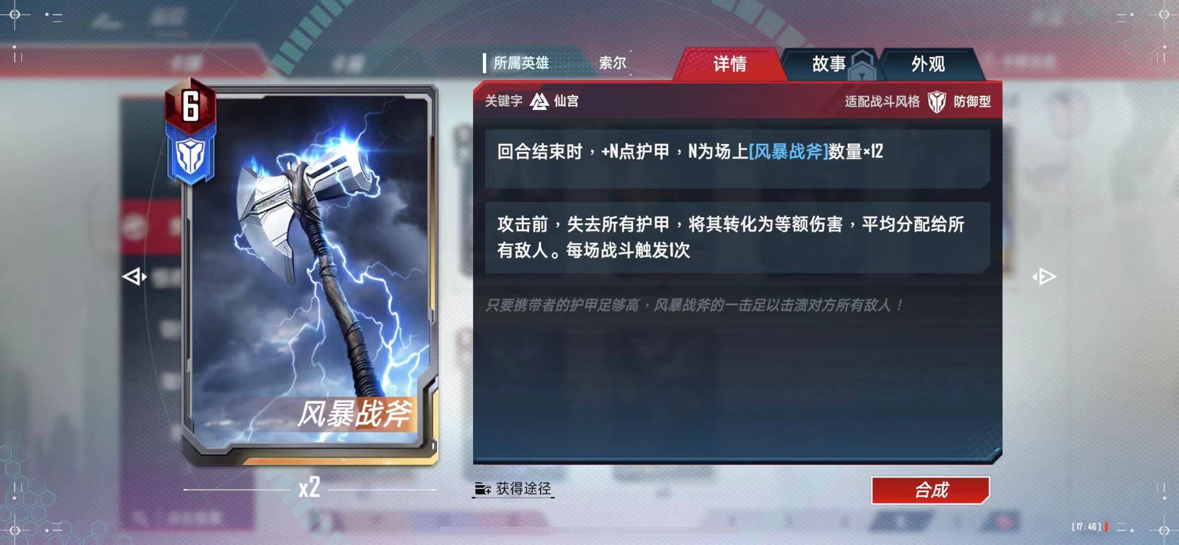 这三张牌我放在一起说,他们只有一个作用,养索尔,不必再多说,索尔护甲越多越能打,如果索尔不贴守护吃叠甲或者这些东西来的早都是可以叠的,后期的风暴战斧在面对类似麻辣鸡丝洛基这种核心牌素体战力不高的卡组时能打出非常可观的效果,风暴战斧也能直接将护甲值转换成更重要的战斗力。