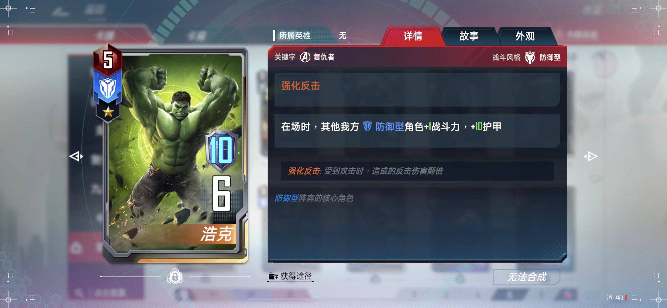 浩克的作用是增加整个阵容的厚度,其对蓝队单卡的群体Buff和复仇者词条让他极其适合这套牌。