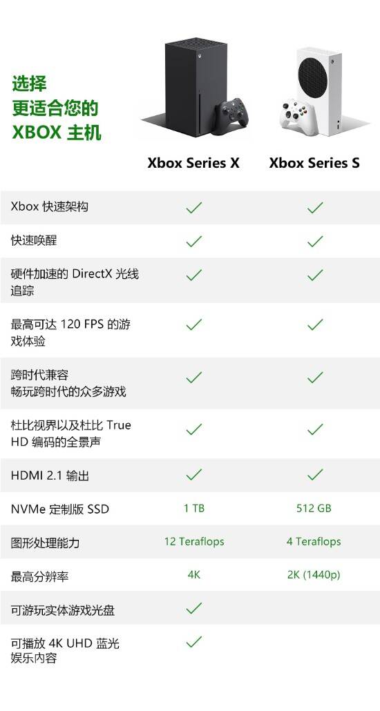 Xbox Series S是一台全面数字化的主机,通过定制的512GB NVMe SSD可实现更短的加载时间,快速唤醒功能让玩家可以在多个游戏间快速切换。最高分辨率支持2K(1440p),浮点运算4 Teraflops。