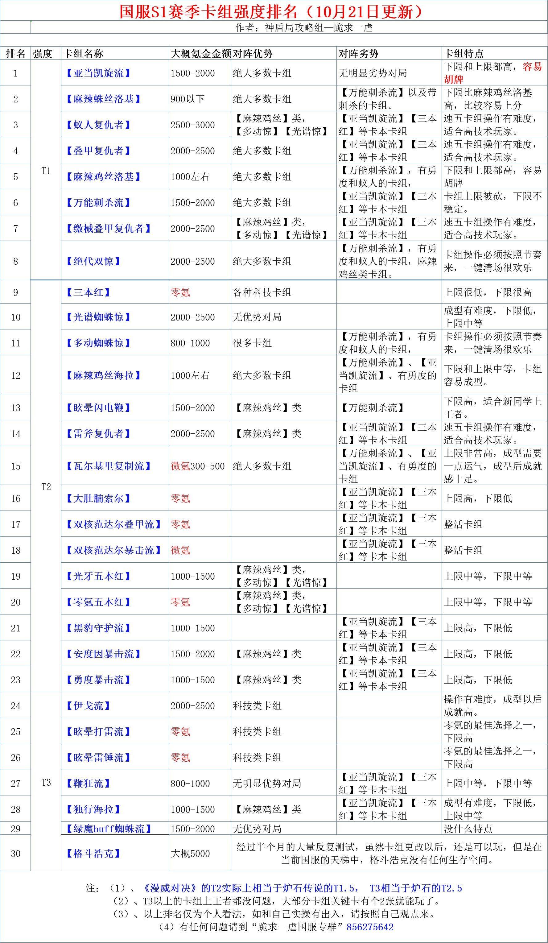 总体上来说,就我最近的战斗记录总结的各卡组强度大概如下: