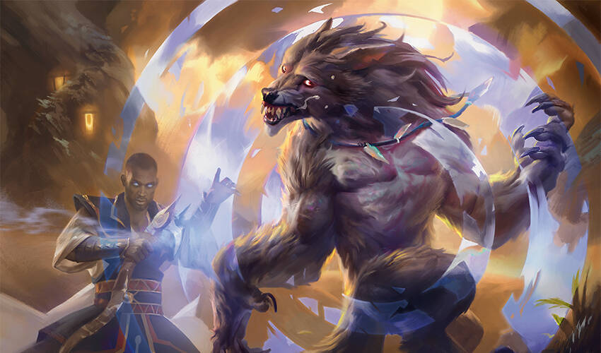 雅琳感到喉头一阵紧绷,但她现在没时间处理这份情绪。红色的光芒将群众那明显的恐惧漆上一道骇人阴影。一只比一座攻城塔稍小的狼人正用拳头挥击魔法屏障的外缘。