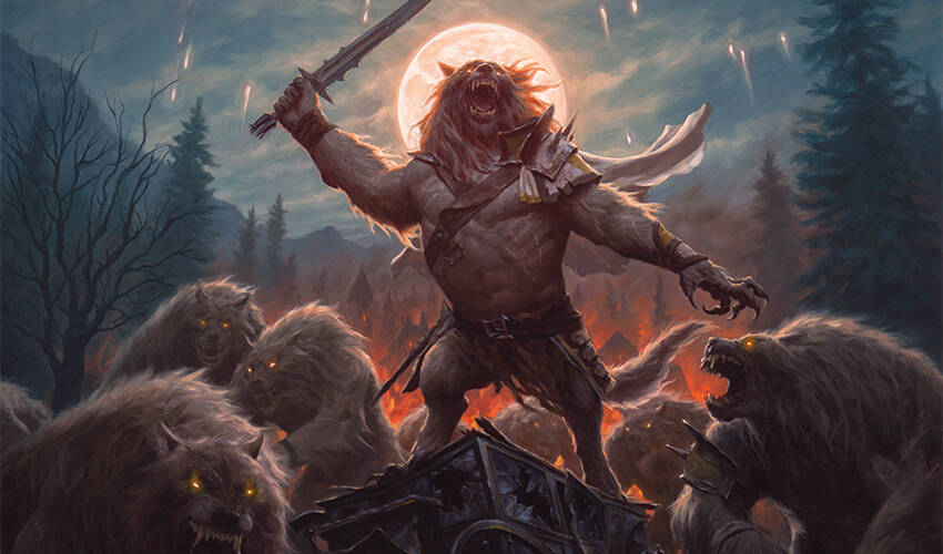 现在雅琳看得见他们了:嚎群祭师们站在树林间,身披其猎物的染色皮毛,随着他们吟咏咒语,其魔法的暗红色光芒也逐渐变得明亮;他们之中速度最快的正饥渴地绕着防御工事外缘奔驰;庞大到难以置信的巨狼逐渐耸现并传递了最终威胁;还有身穿坚韧皮甲的狼群。