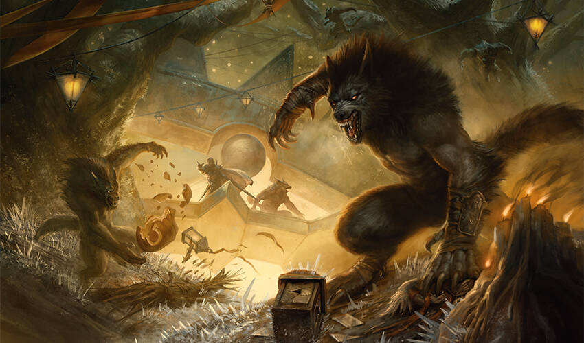 宛如一阵袭向涅非利亚的浪潮;一排狼人扑向脱队的庆典参与者。鲜血四溅于空中,骨头在变身死神的巨口下碎裂,一声嚎吼使她燃起了自我厌恶与饥饿。
