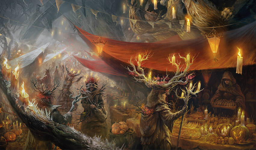 一层薄霜落在这场活动上。在仅仅几码远处,她的巫婆同伴带头唱起无畏的歌曲,试图将旋律自迟疑的声音中哄诱而出。从黛达米雅处往下走两个摊位,她的友人莎娜举起一杯香料苹果酒。这场节庆或许有一种阴郁的外观,而且如果太阳没回归其适切的位置,他们可能会在几个月内尽数死去,但此刻,至少还有香料苹果酒带来的喜悦。