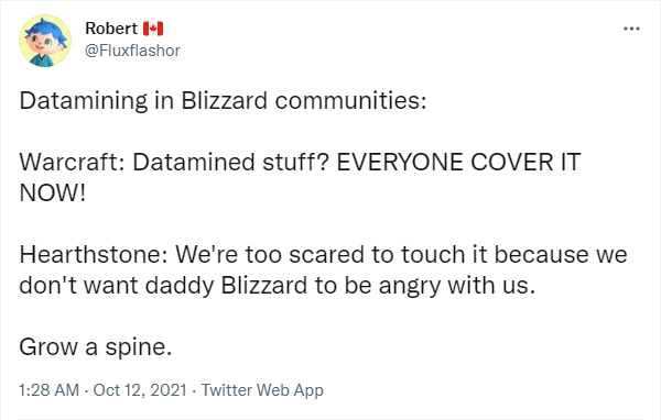 【提问背景当然包括Flux和他的OutofCards在佣兵预览季的“卓越贡献”。话说Flux本人对于炉石媒体网站对待拆包的忌讳程度是不太看得起的,而且目前来看他也确实没被惩罚,T5寄给各家的周边礼品照样还有他的一份】
