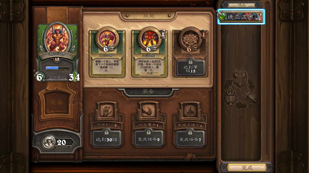 每个可收集的佣兵都有18个任务,按顺序给出,第二个任务可以给一件既定装备,第七个任务可以给一件既定装备,佣兵升到30级就可以在成就里再领一件既定装备。