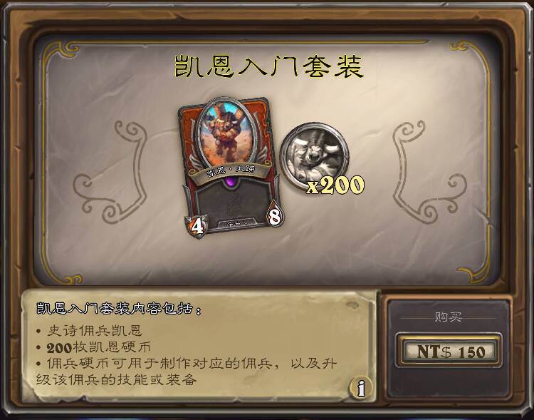 含3堆200枚史诗佣兵硬币,国服售价18,11月2日下架。