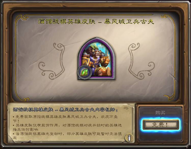 含战棋古夫新皮肤“暴风城卫兵古夫”,登录免费领取。