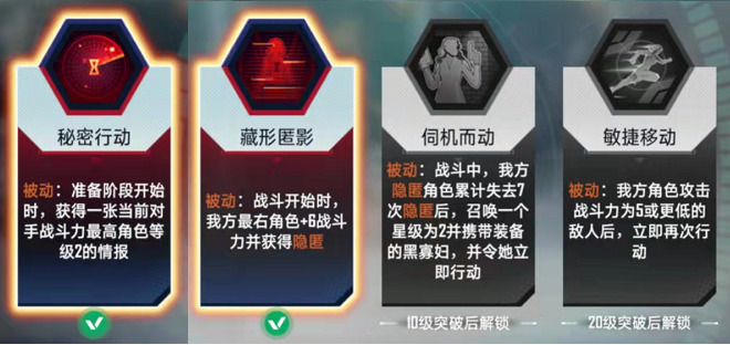 在天梯中刺杀比较多的时候,建议首选这个技能,配合一张狙击,可以直接秒掉对手攻击最高的单位,比如万能装甲。刺杀前就给他狙击掉。有了这个技能,实际上本卡组基本不怕万能的。也可以克制大身材的索尔、伊戈、勇度等。
