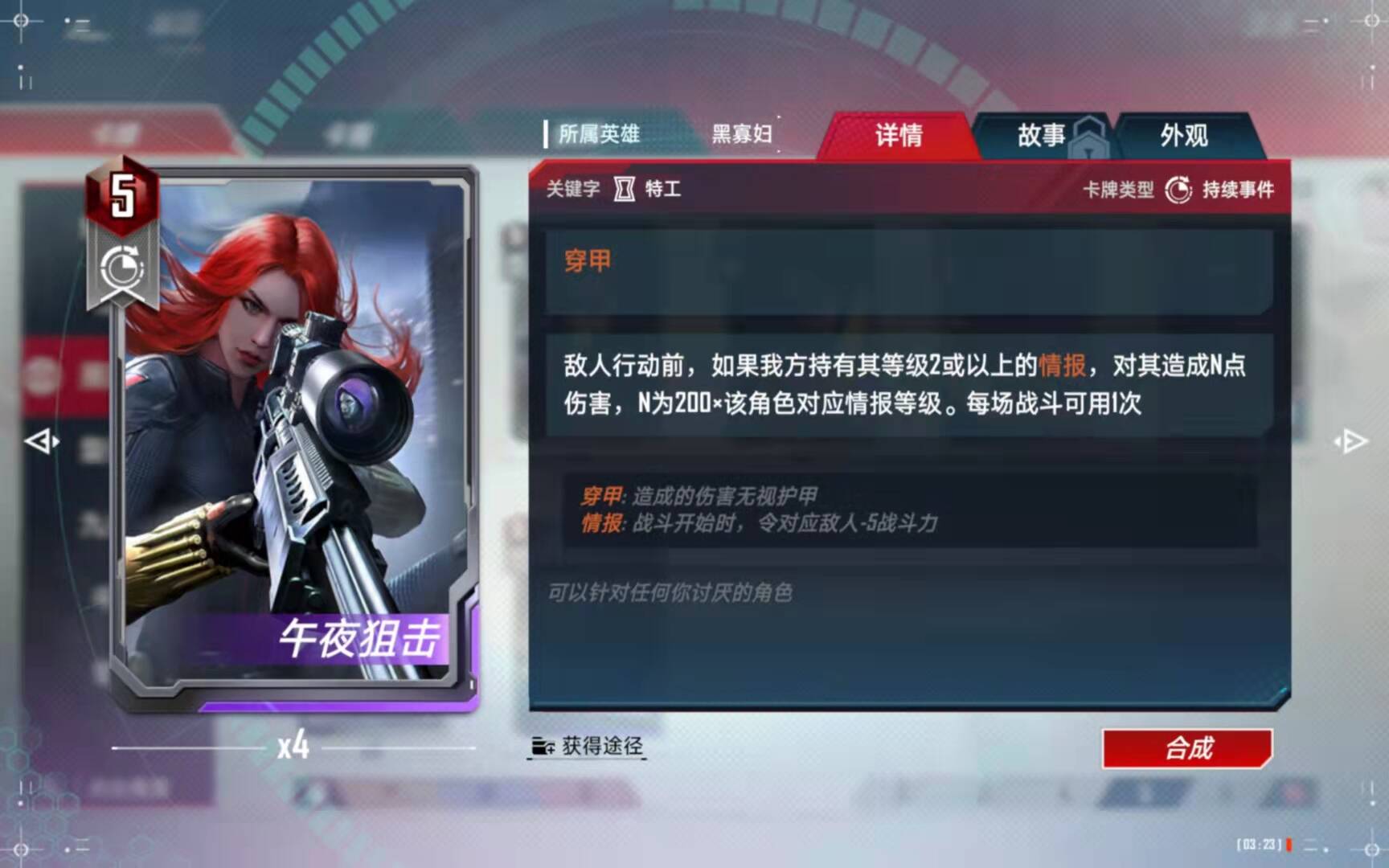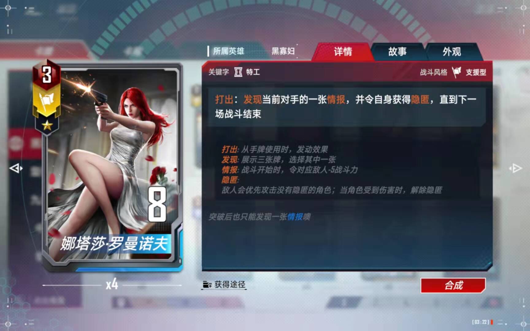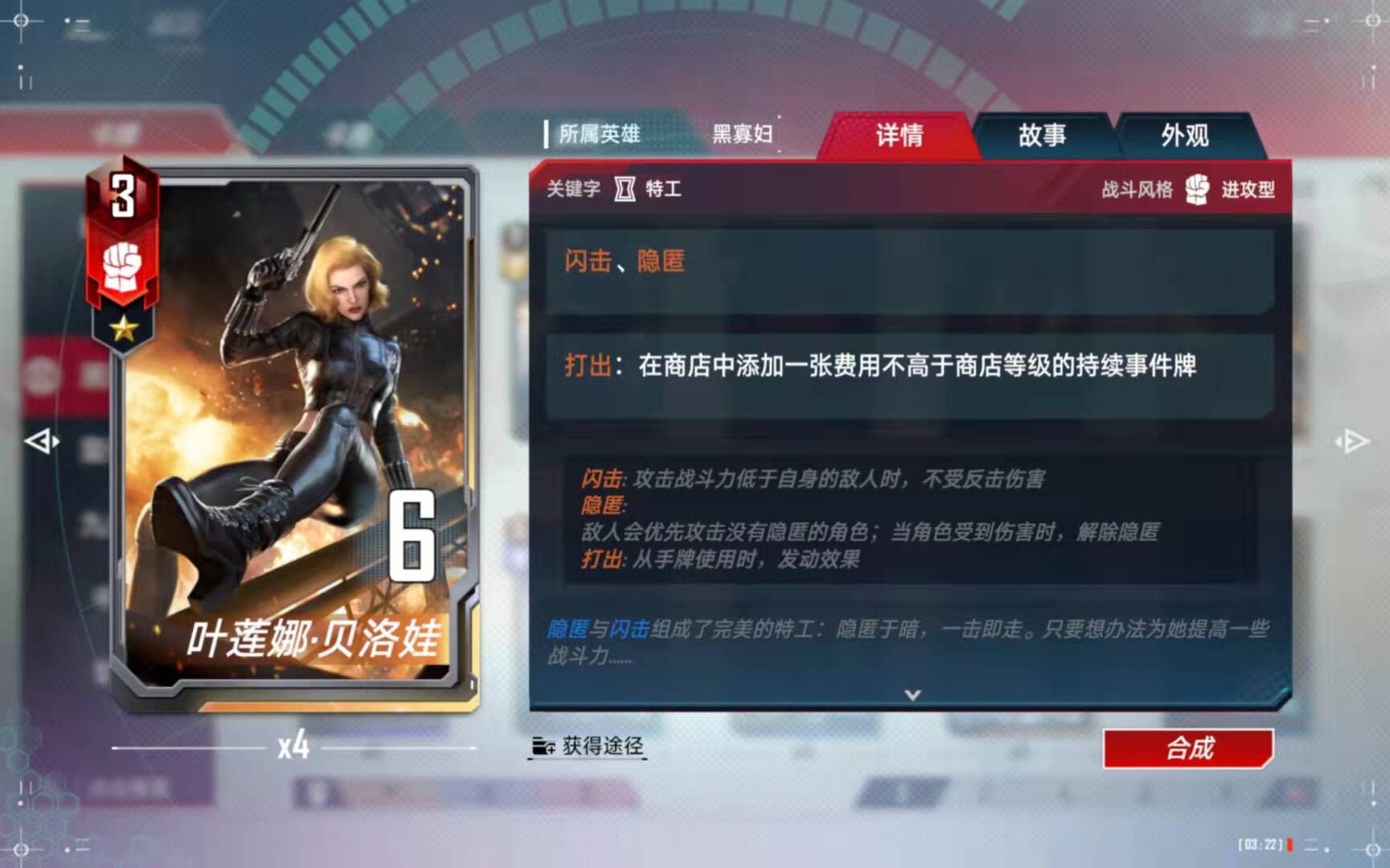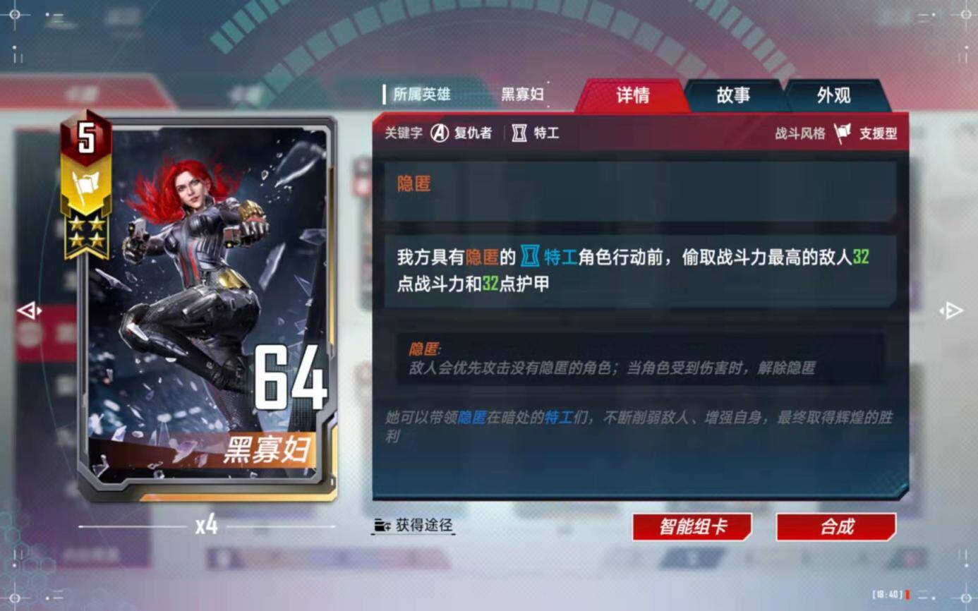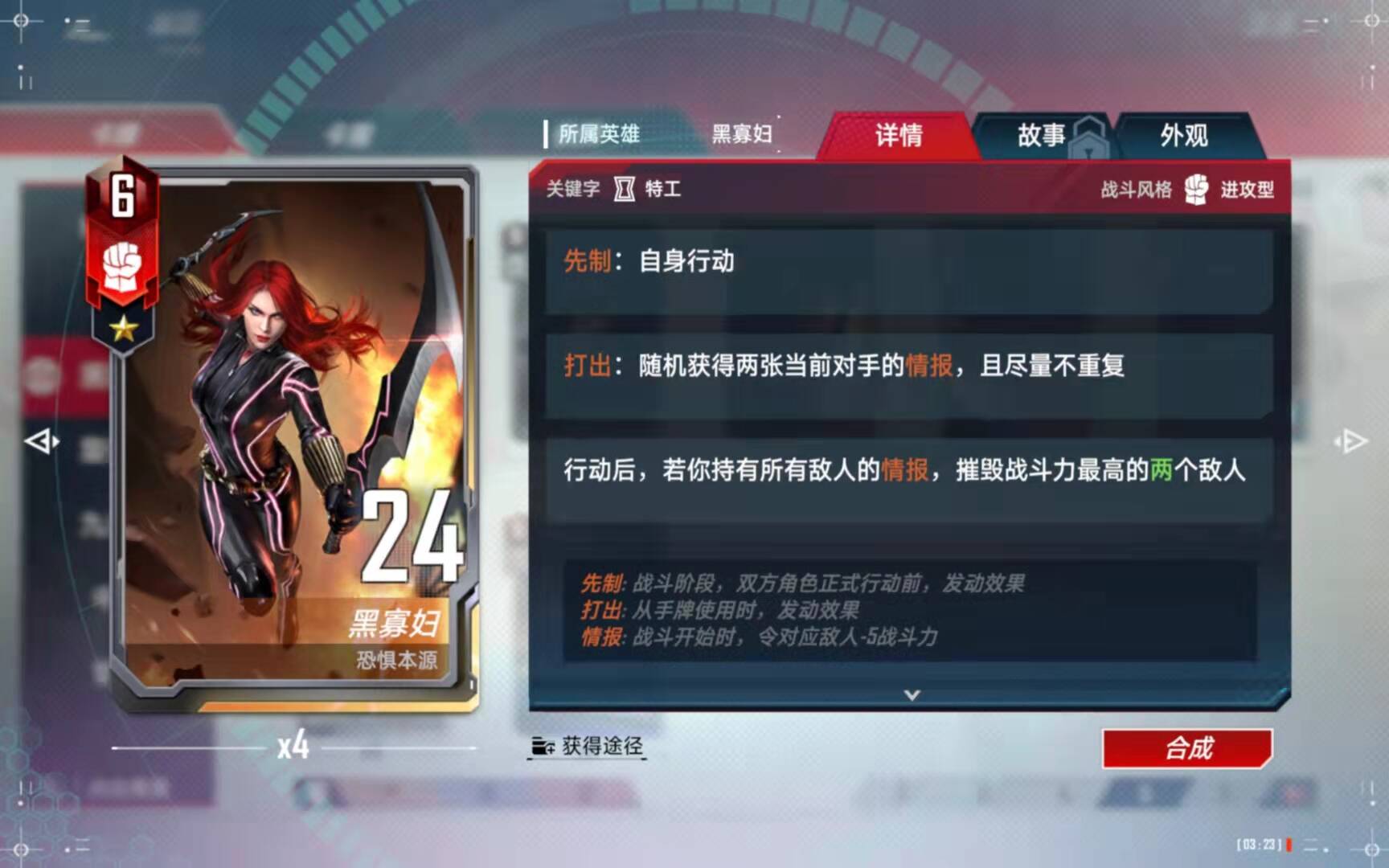 (5)、合成备注:有了四张黑寡妇以后,第二考虑的就是合成这张橙卡了。