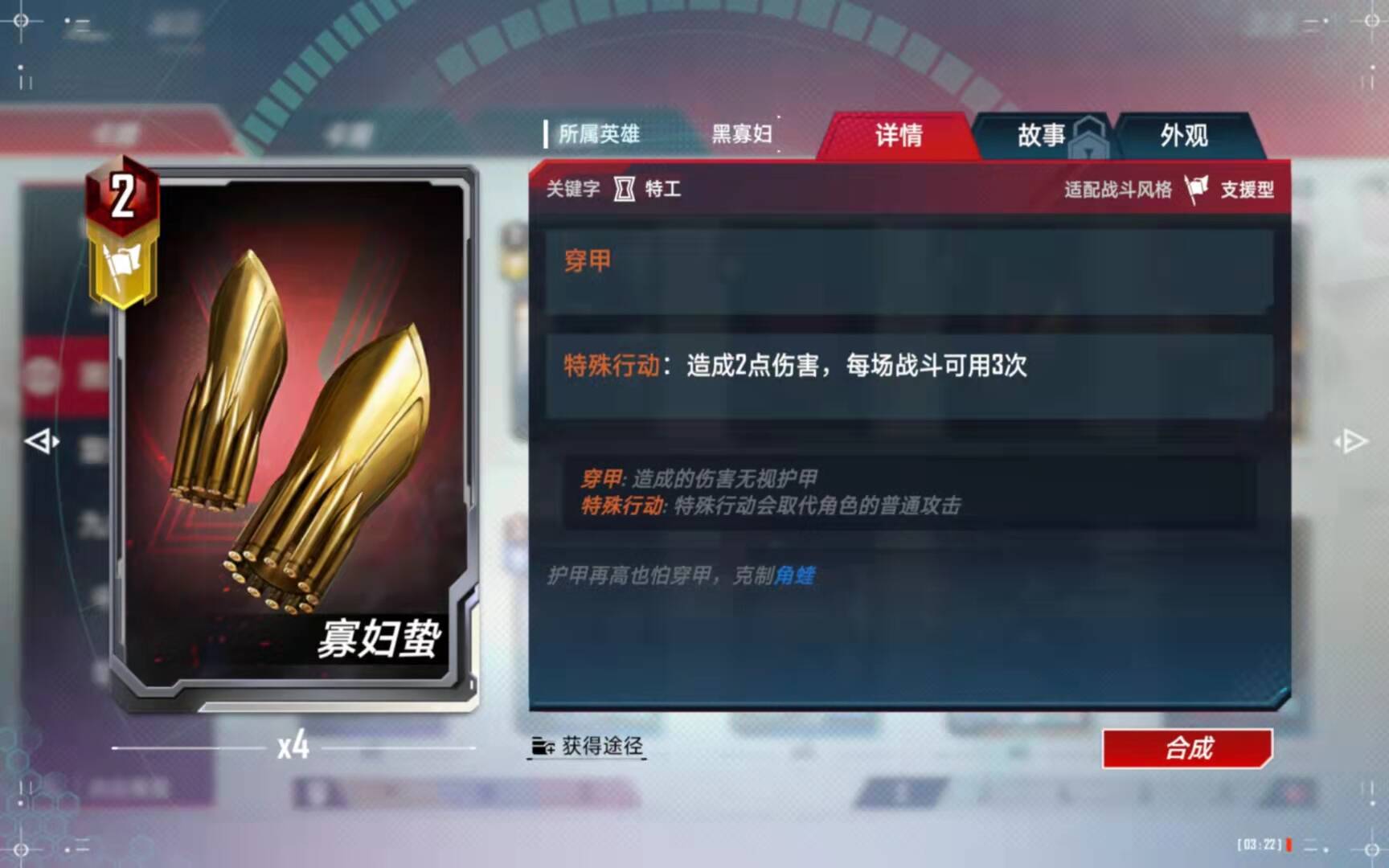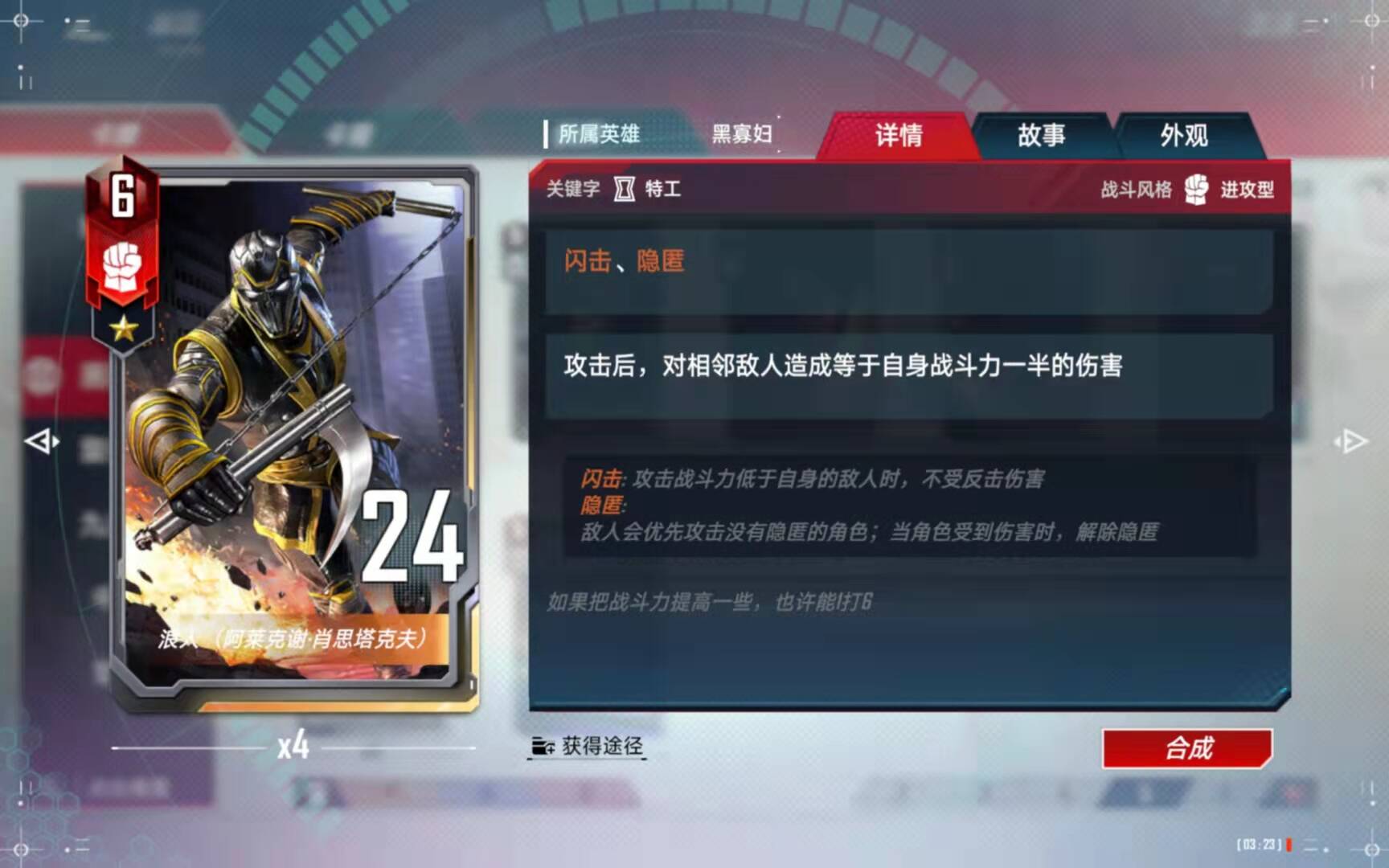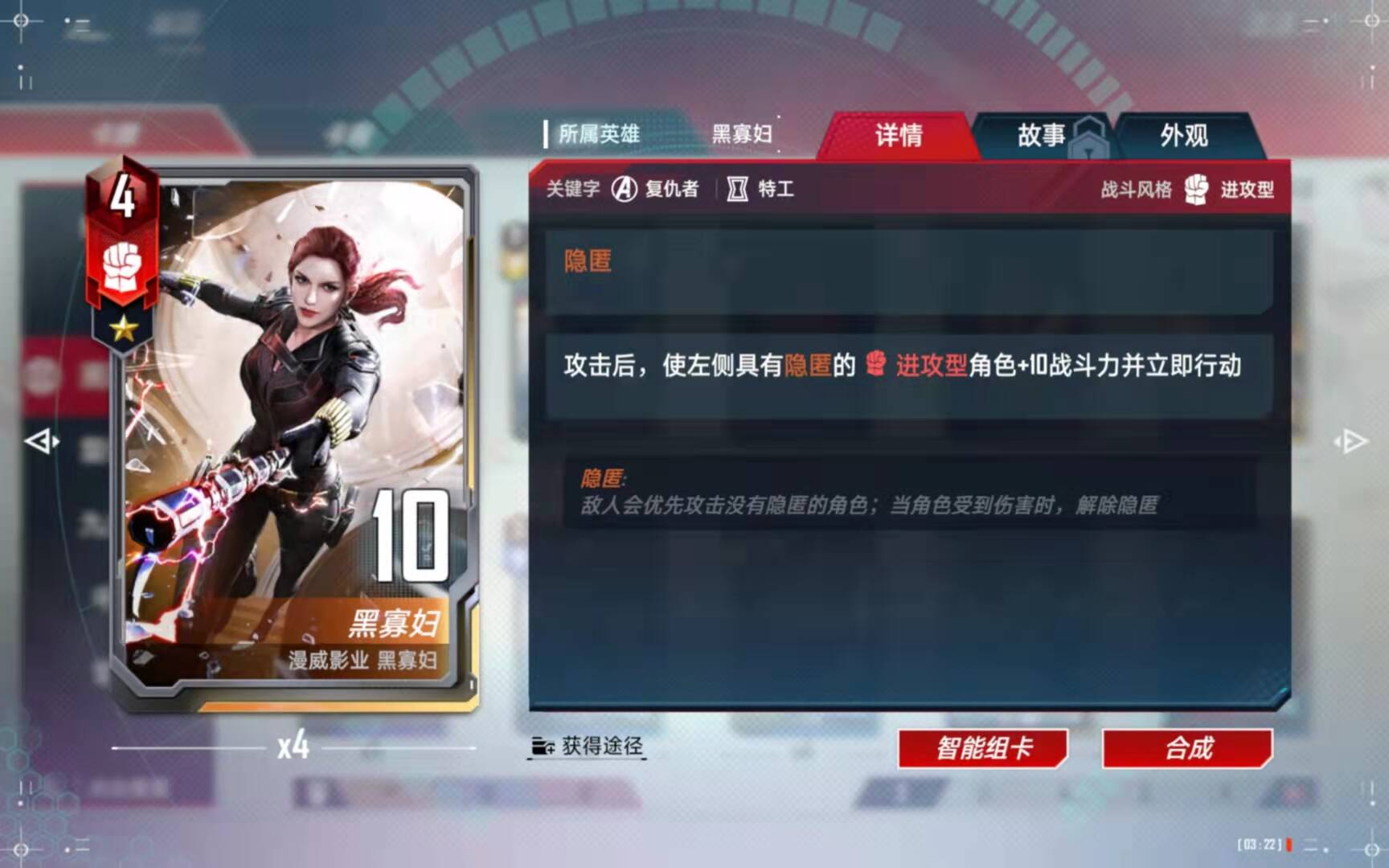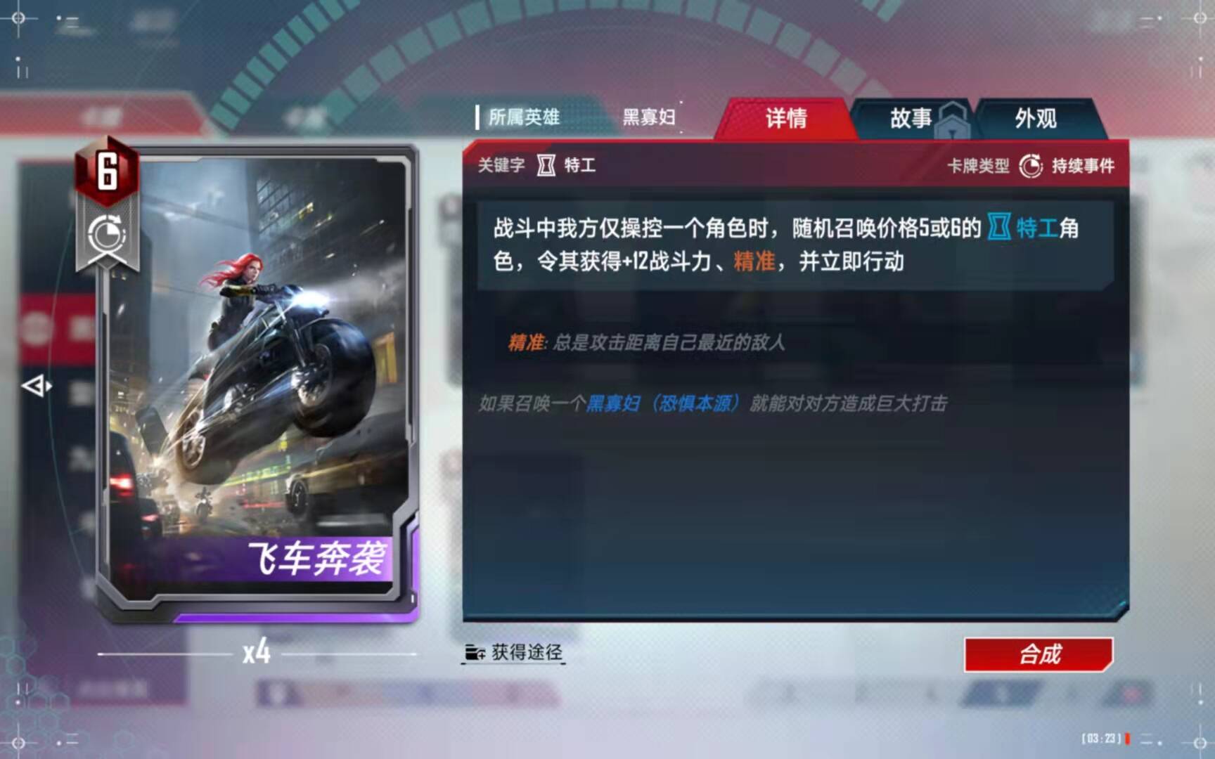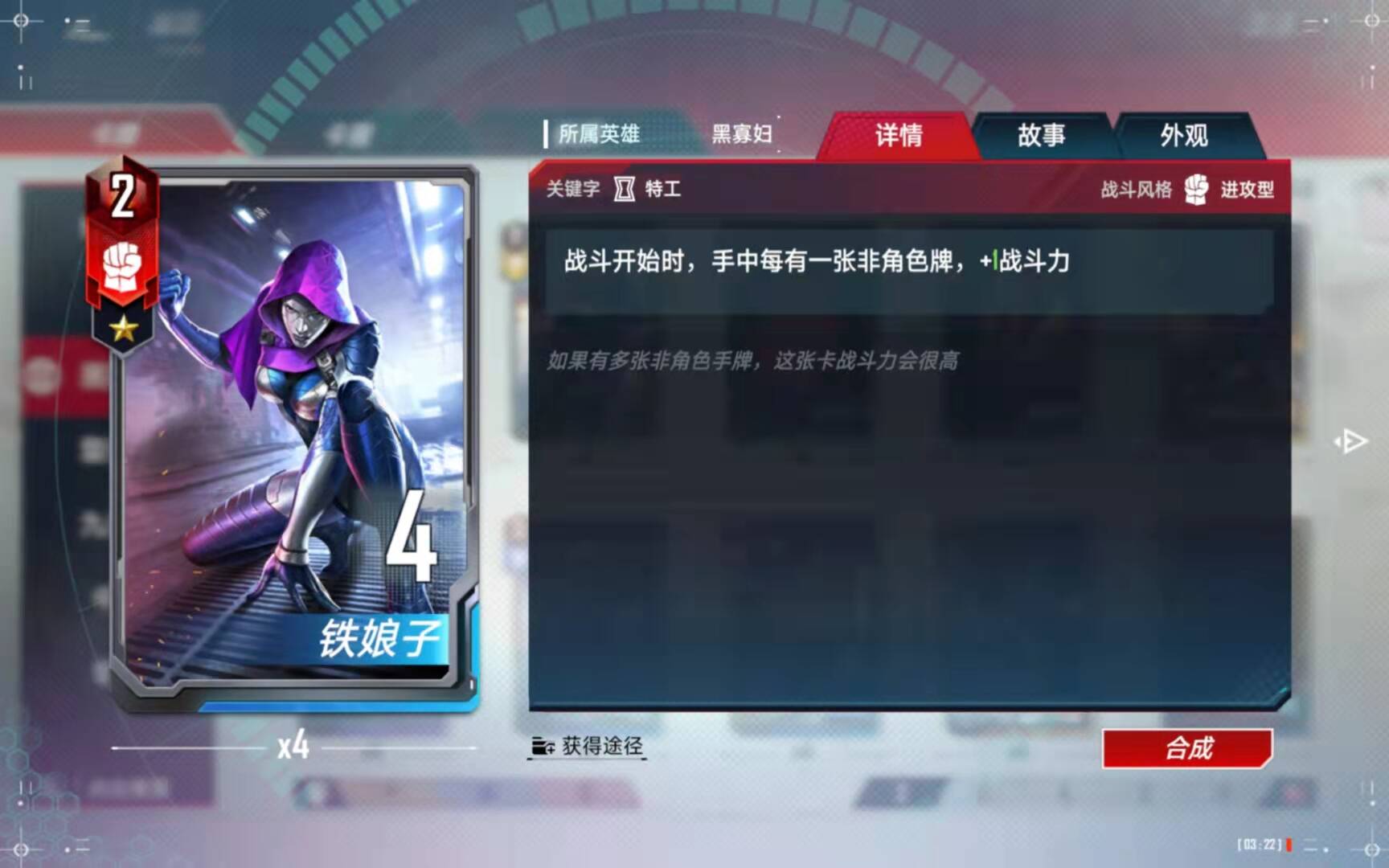 (5)、合成备注:有了四张黑寡妇以后,第二考虑的就是合成这张橙卡了。