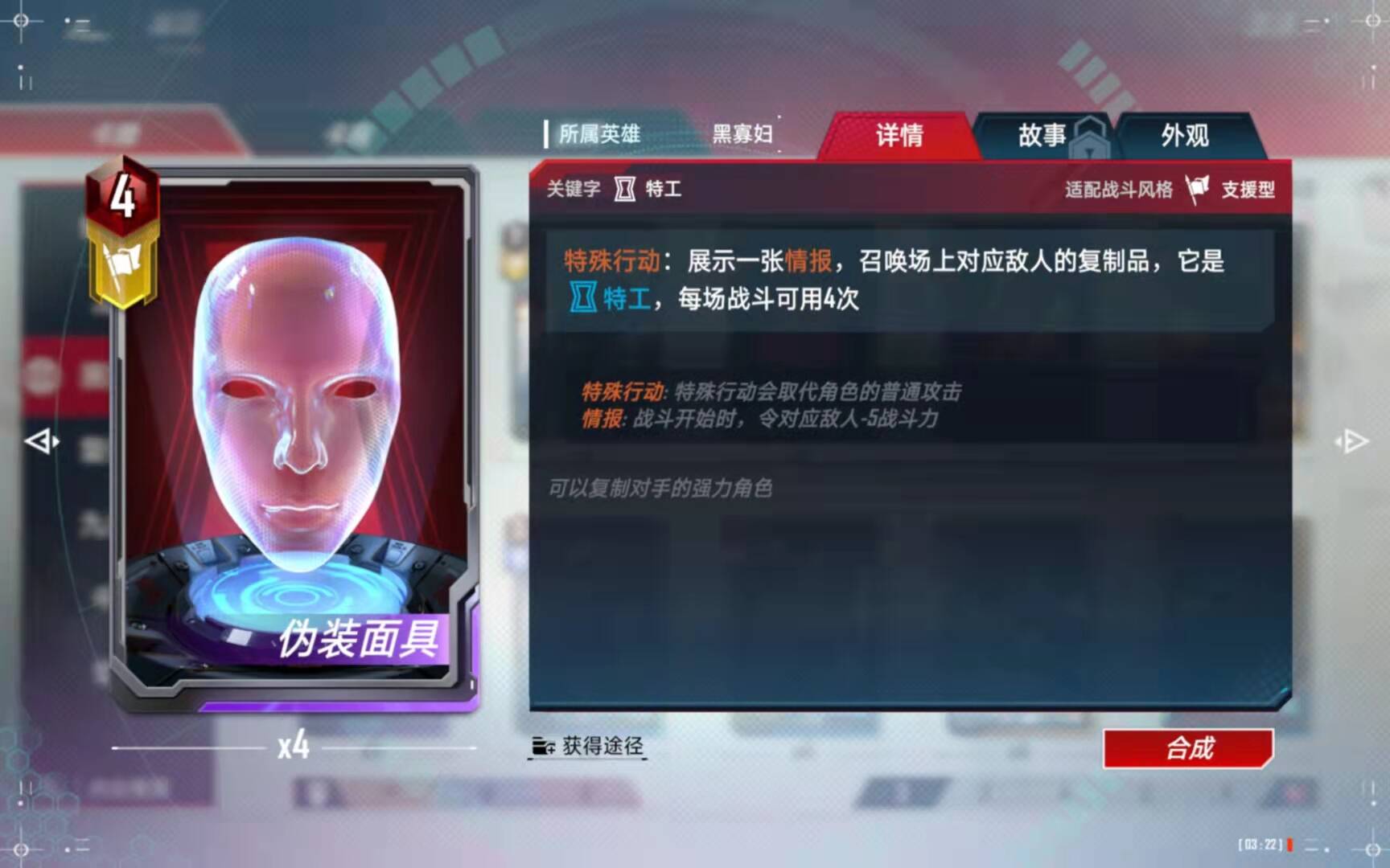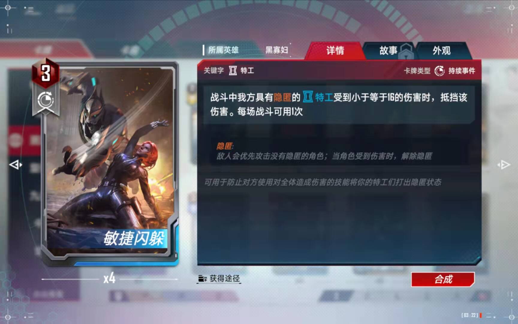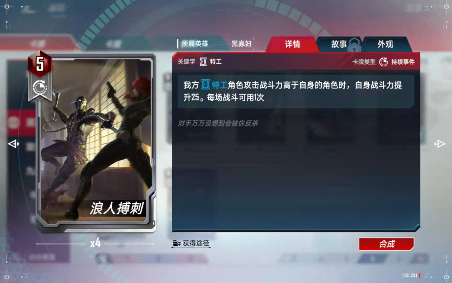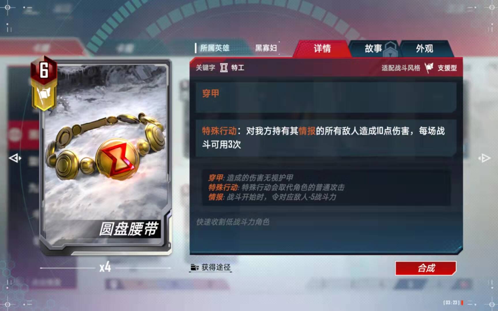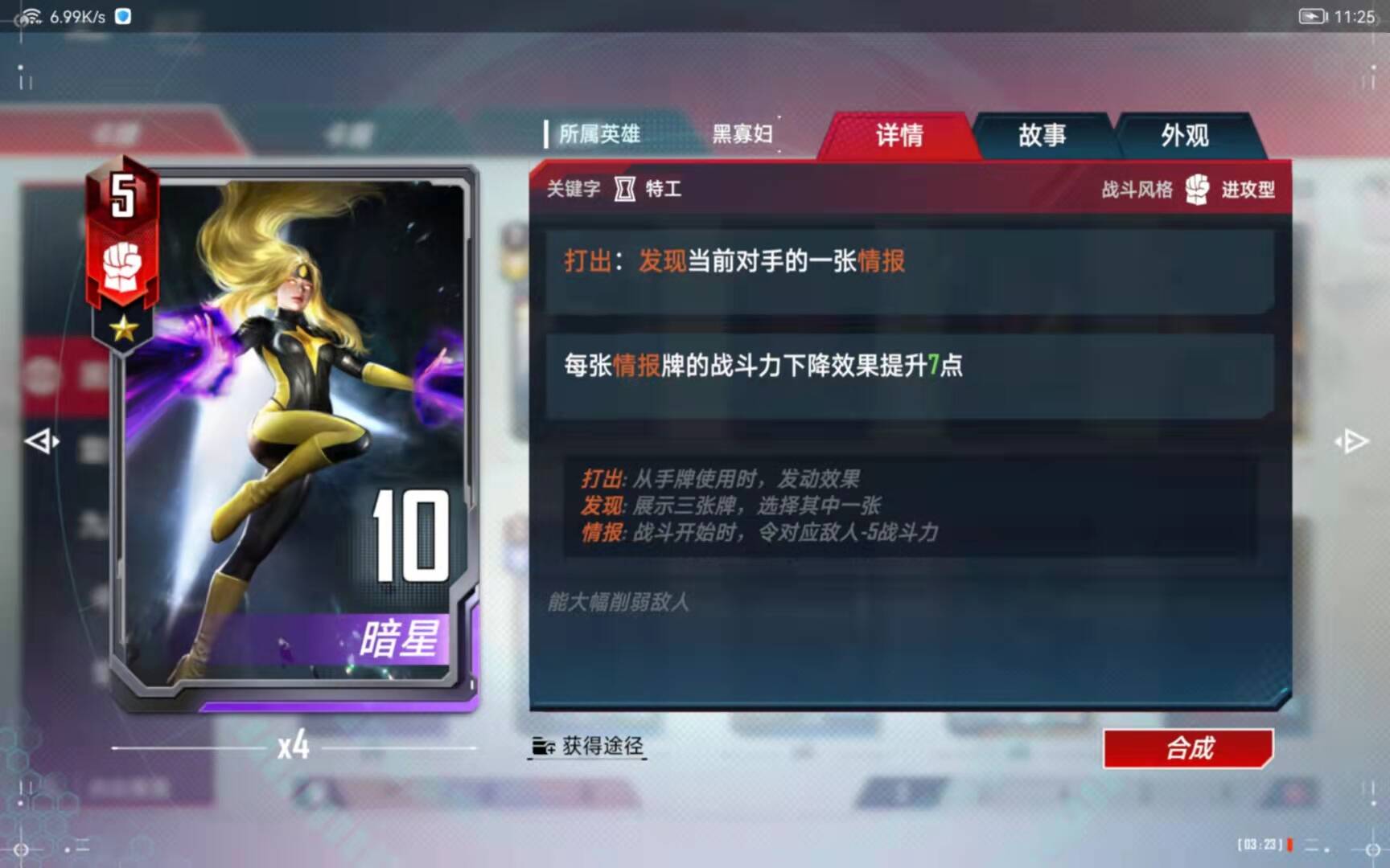 (5)、合成备注:有了四张黑寡妇以后,第二考虑的就是合成这张橙卡了。
