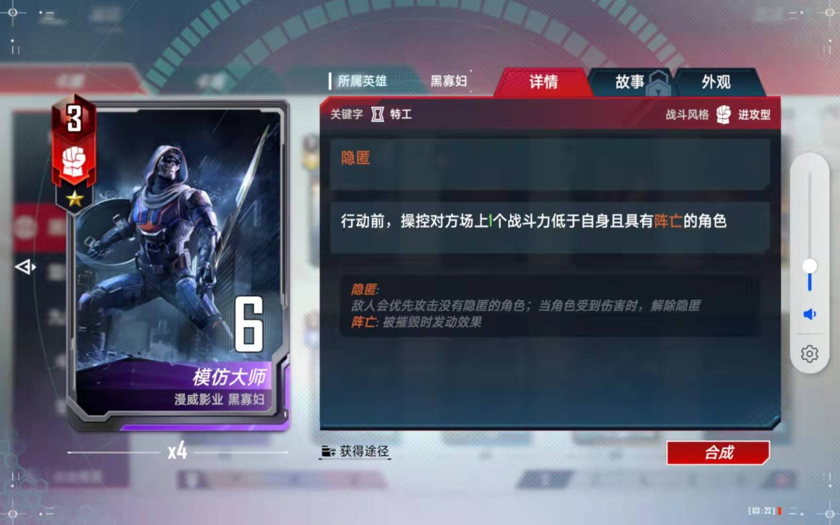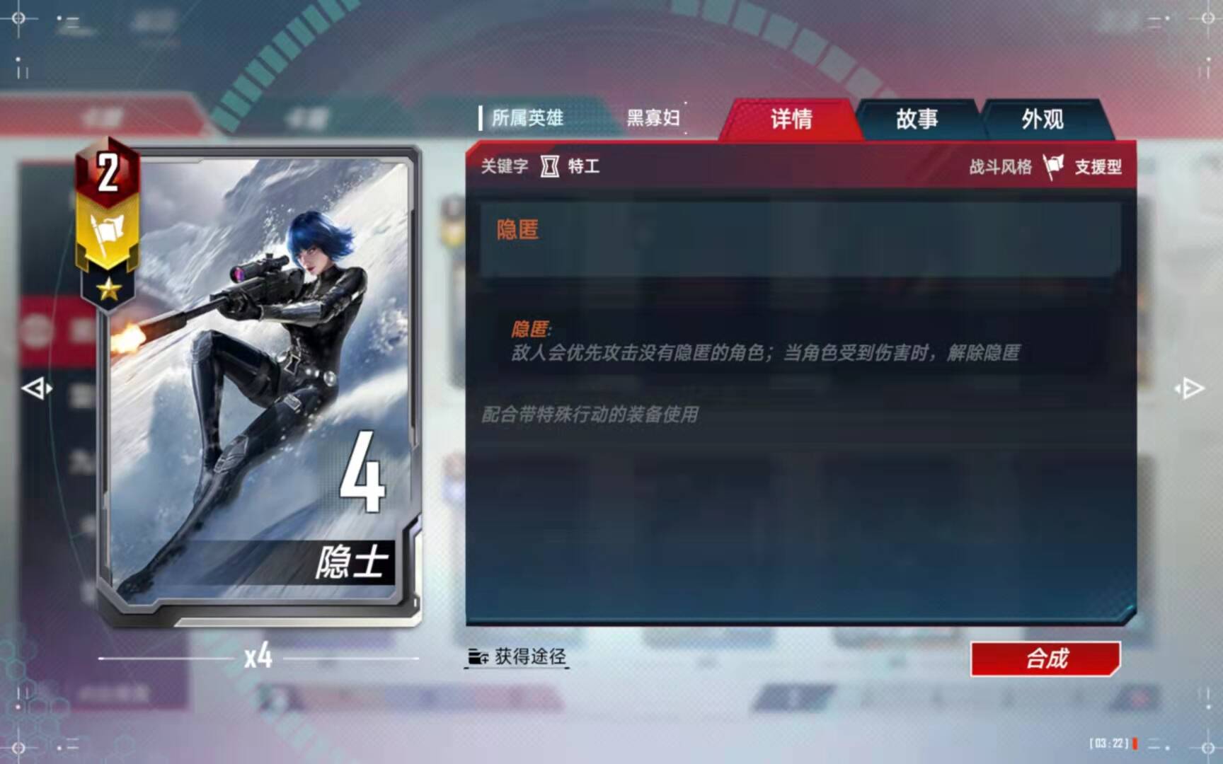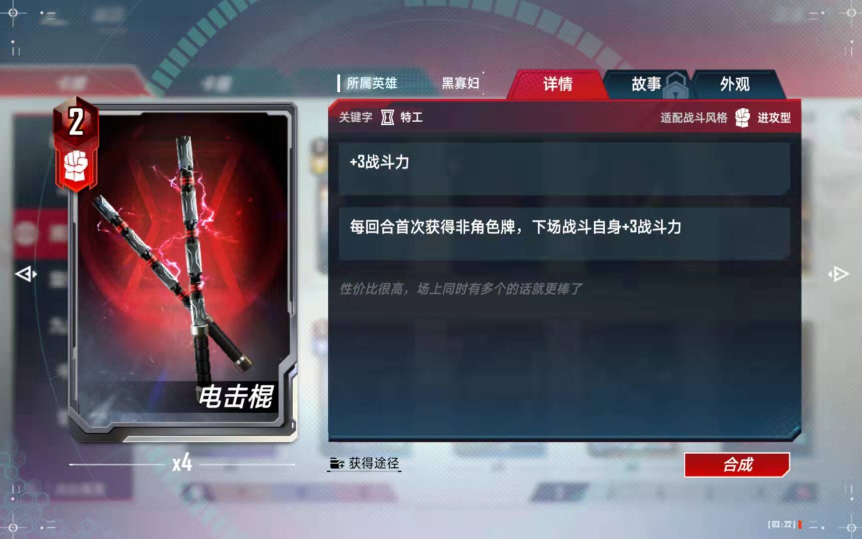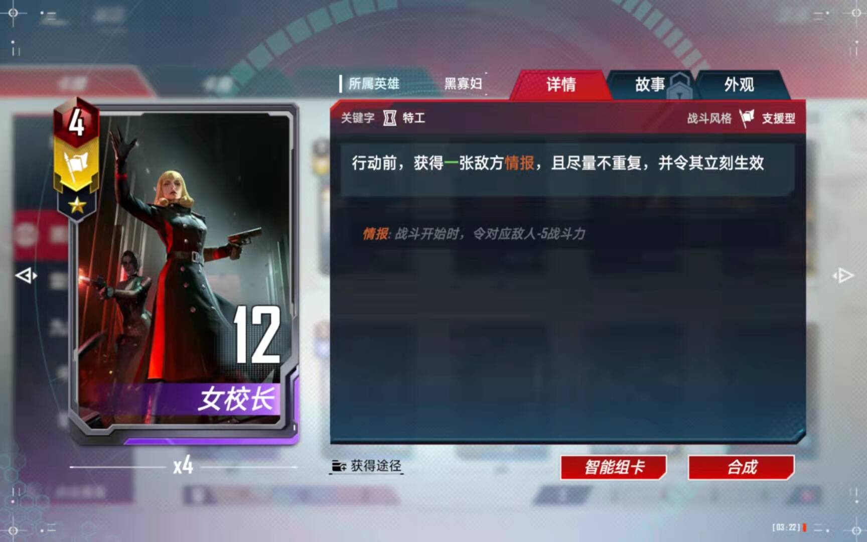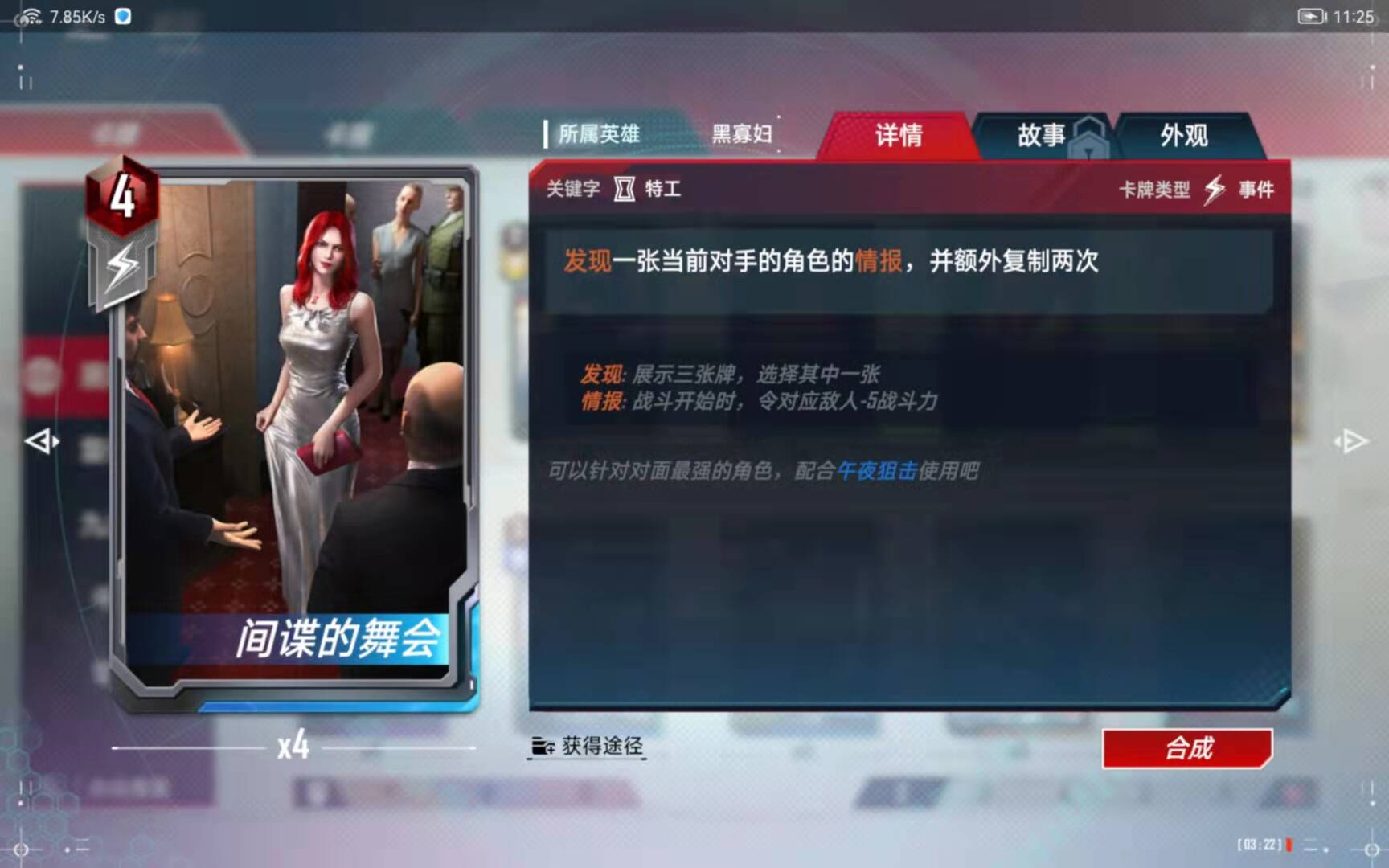 (5)、合成备注:有了四张黑寡妇以后,第二考虑的就是合成这张橙卡了。
