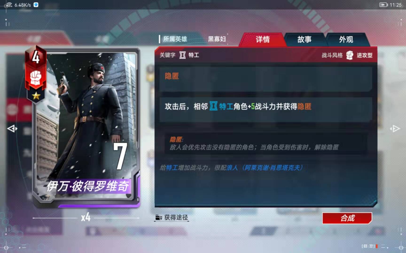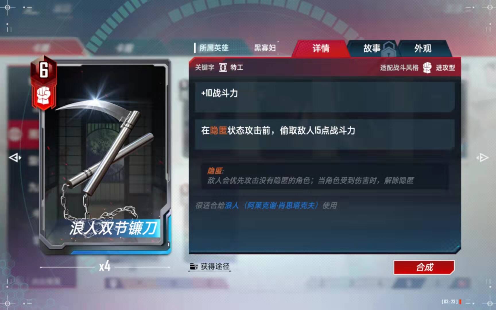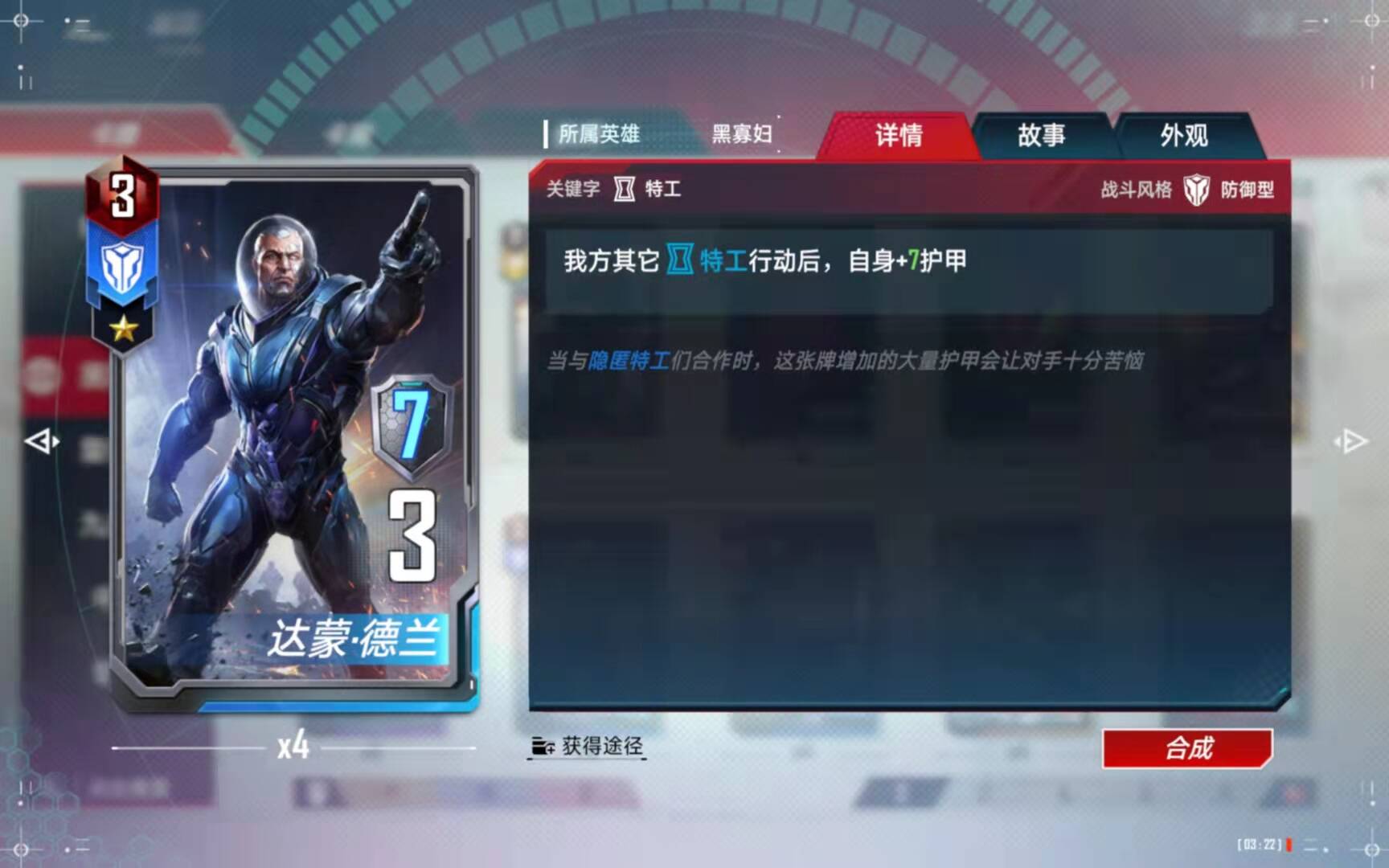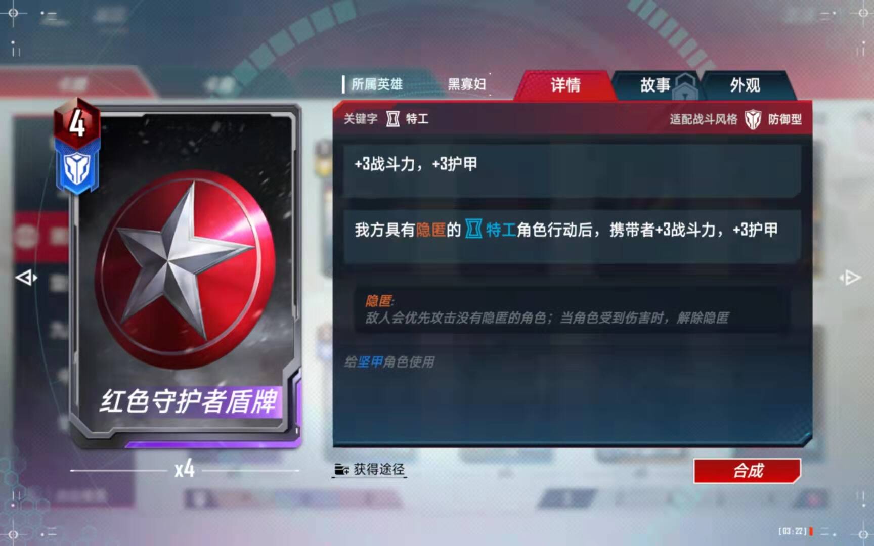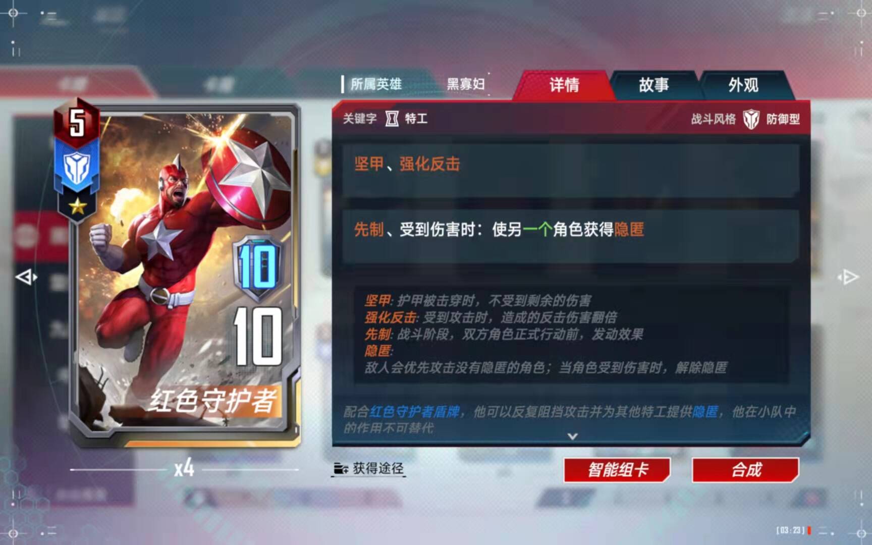(5)、合成备注:有了四张黑寡妇以后,第二考虑的就是合成这张橙卡了。